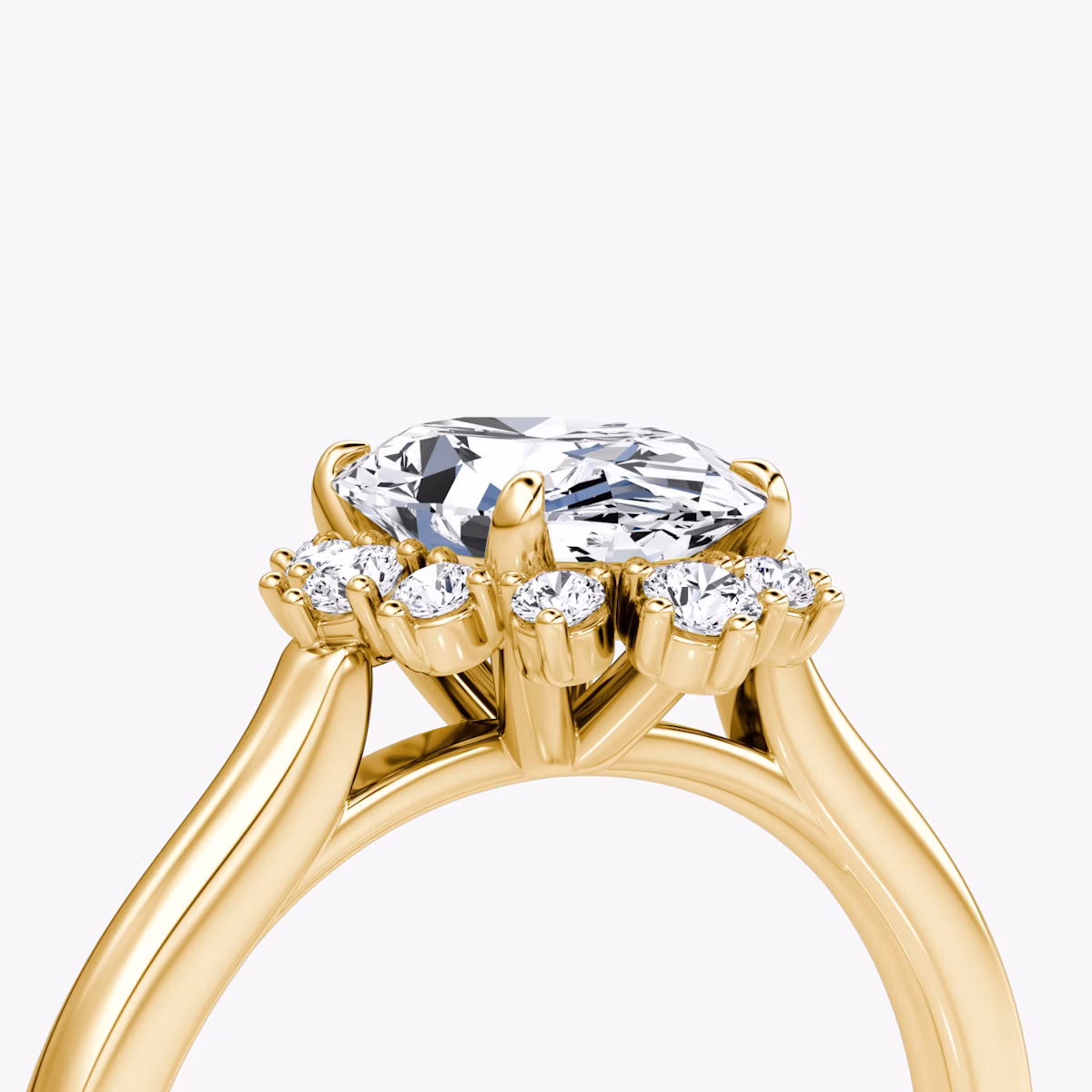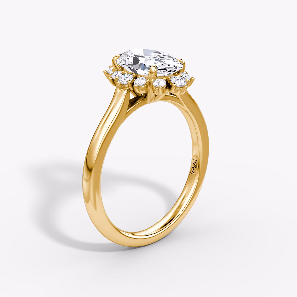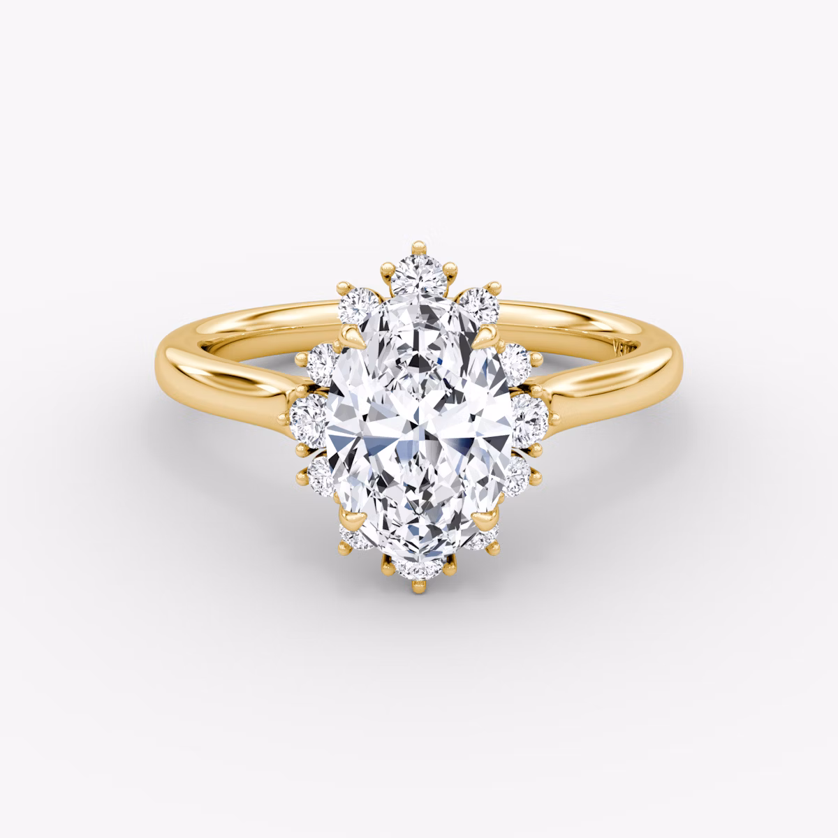 The Aurora Halo ring in 18k yellow gold with a oval diamond