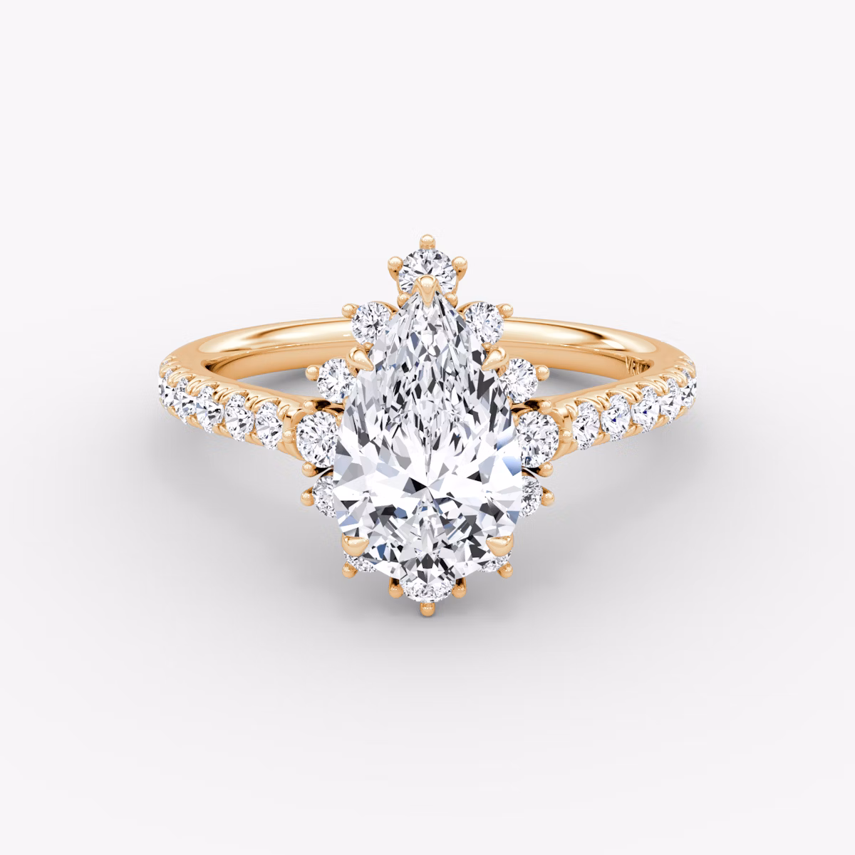 The Aurora Halo ring in 14k rose gold with a pear diamond