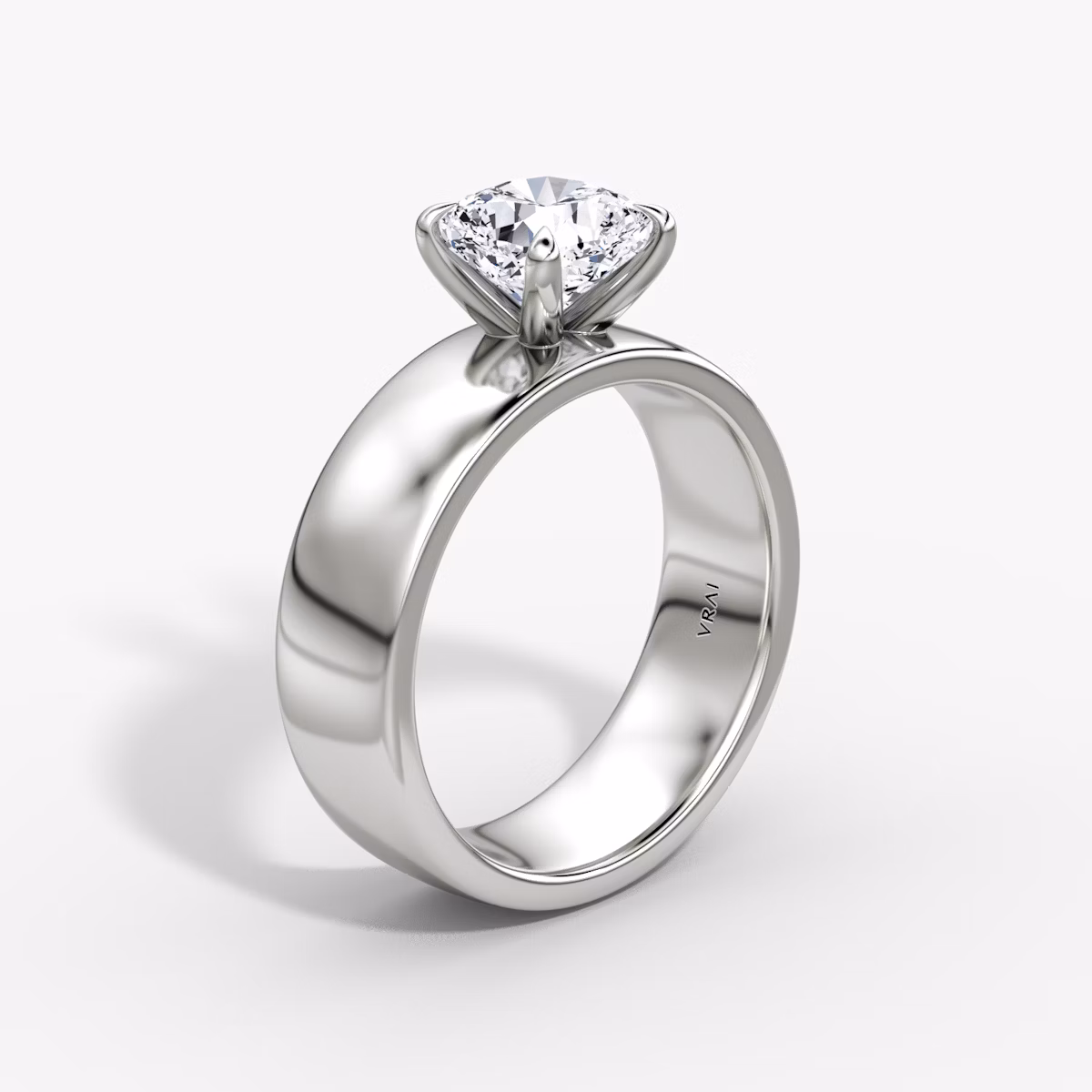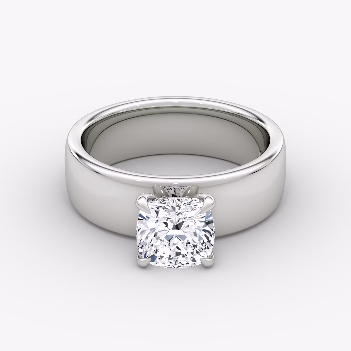 Cigar Band Solitaire solitaire in 18k white gold with a cushion diamond