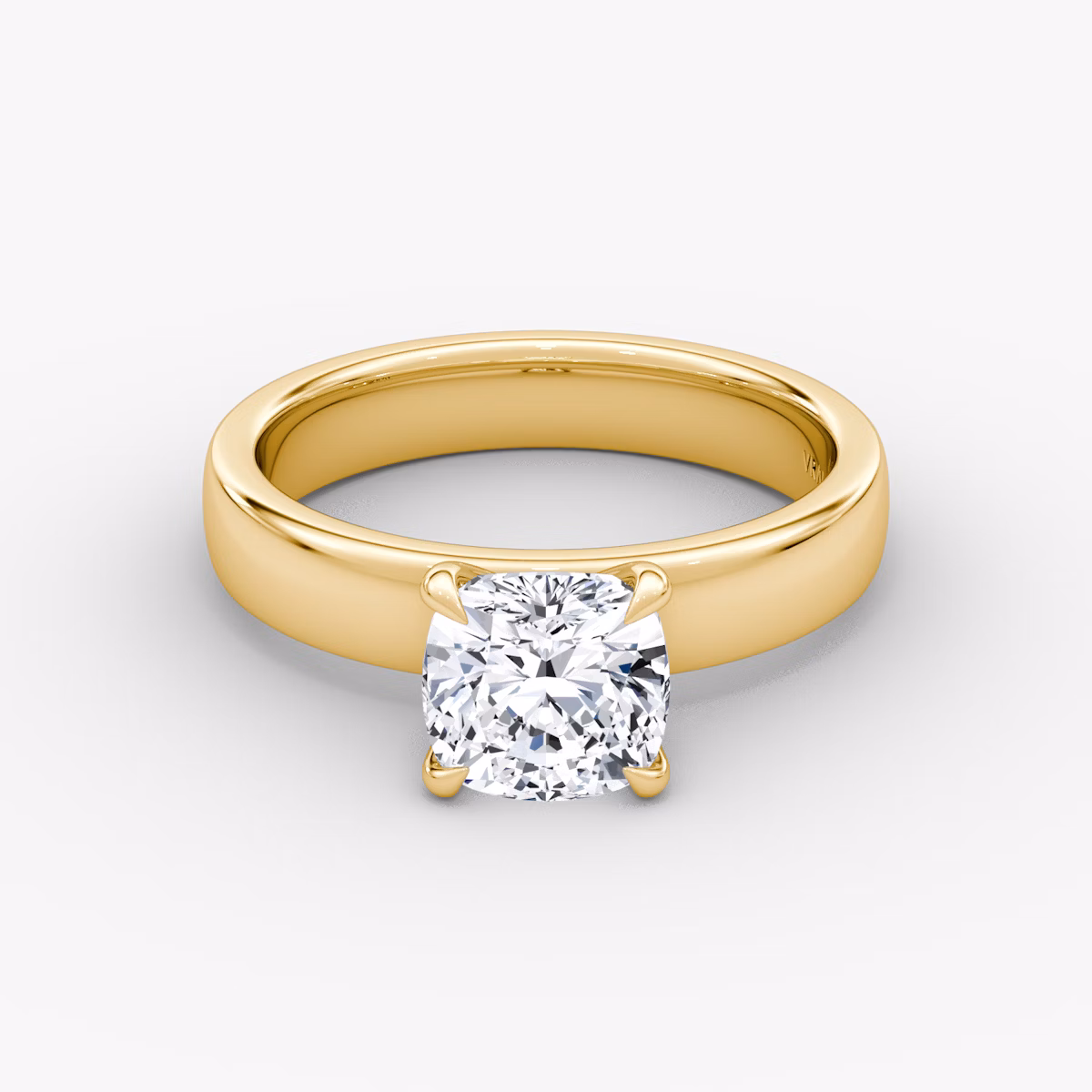 Cigar Band Solitaire solitaire in 18k yellow gold with a cushion diamond