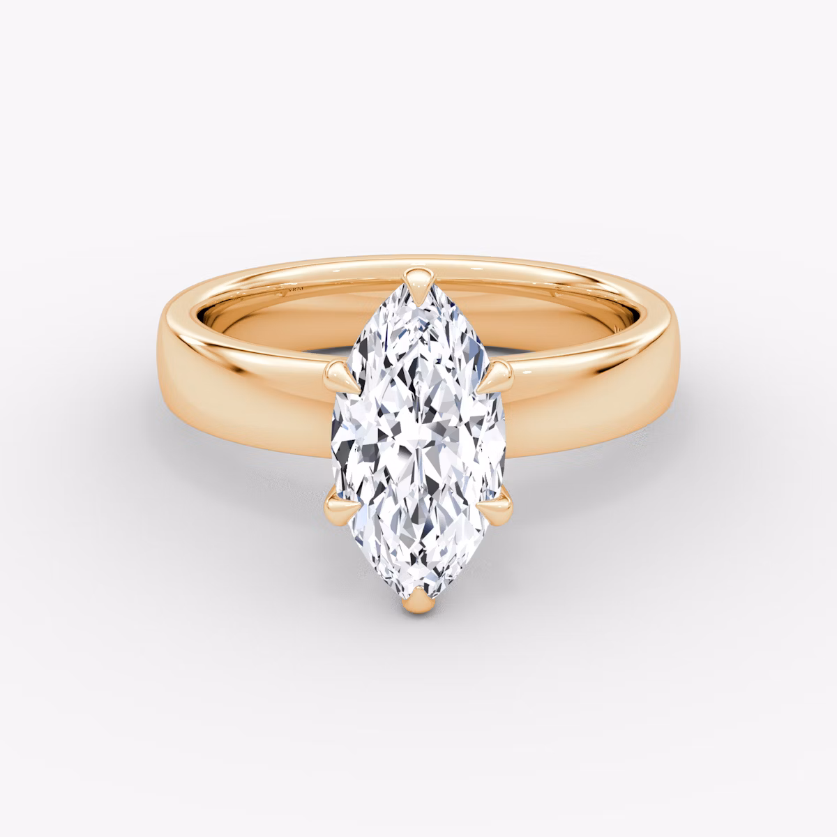 Cigar Band Solitaire solitaire in 14k rose gold with a marquise diamond