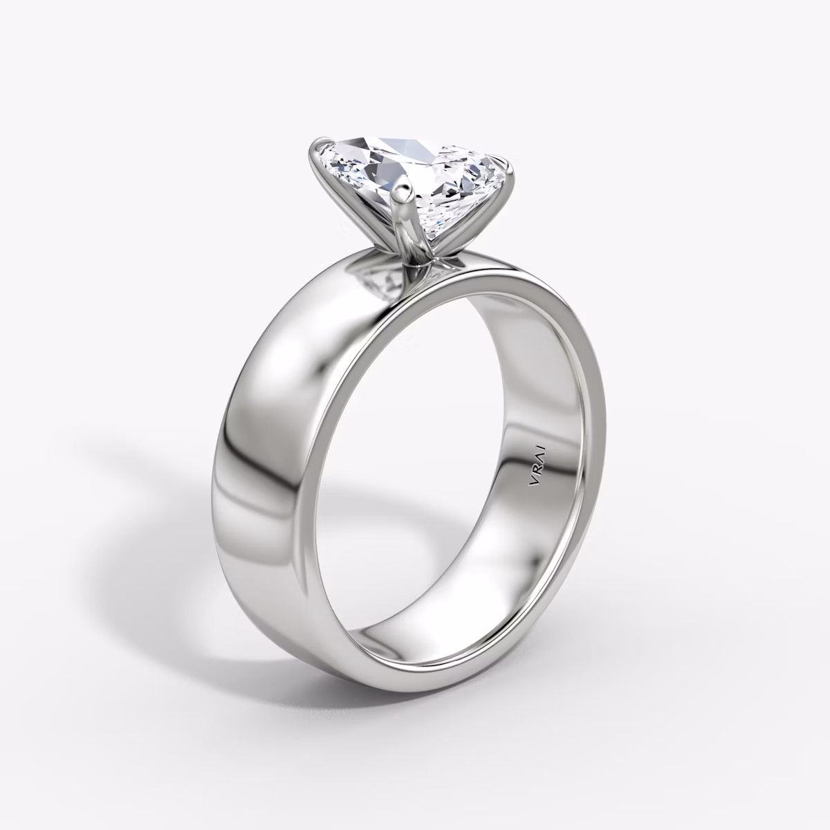 Cigar Band Solitaire solitaire in 18k white gold with a pear diamond