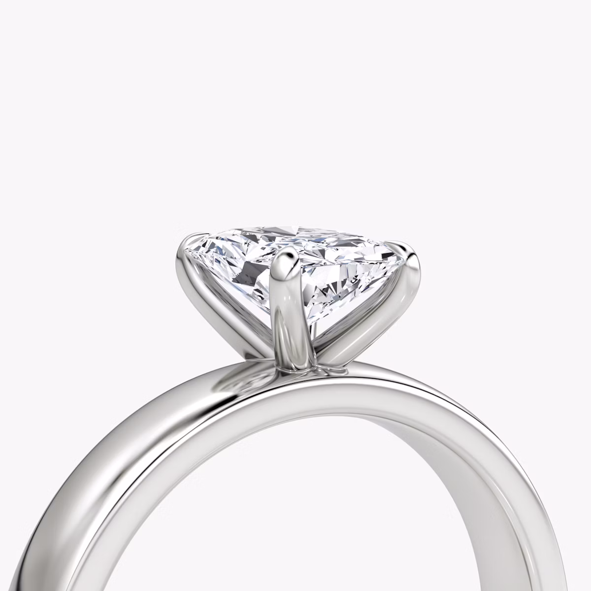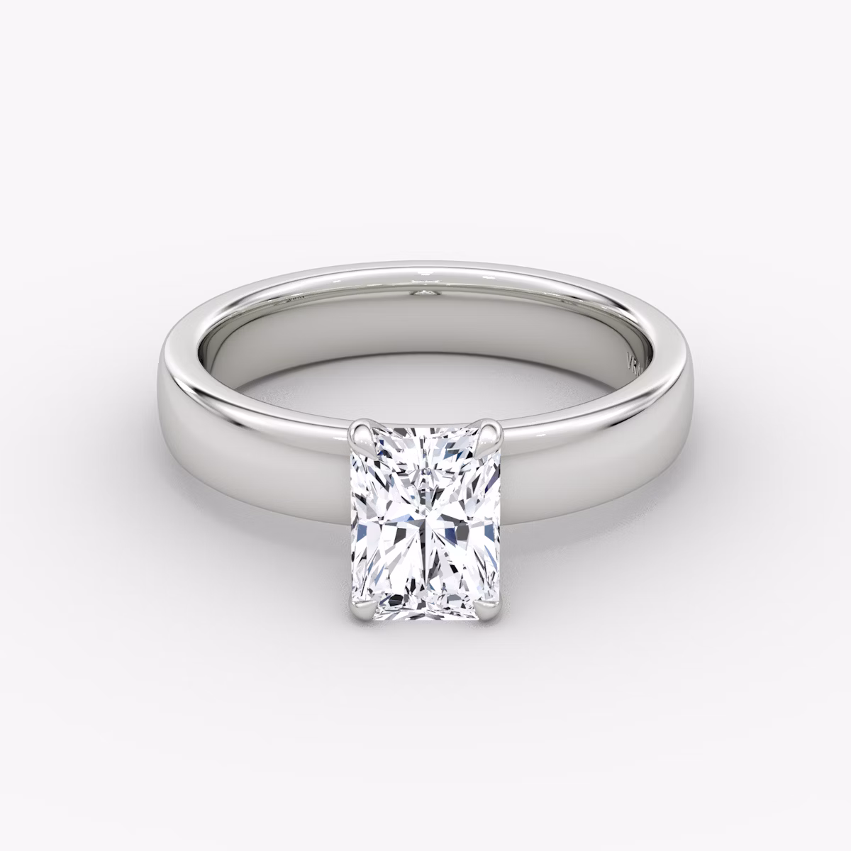 Cigar Band Solitaire solitaire in 18k white gold with a radiant diamond