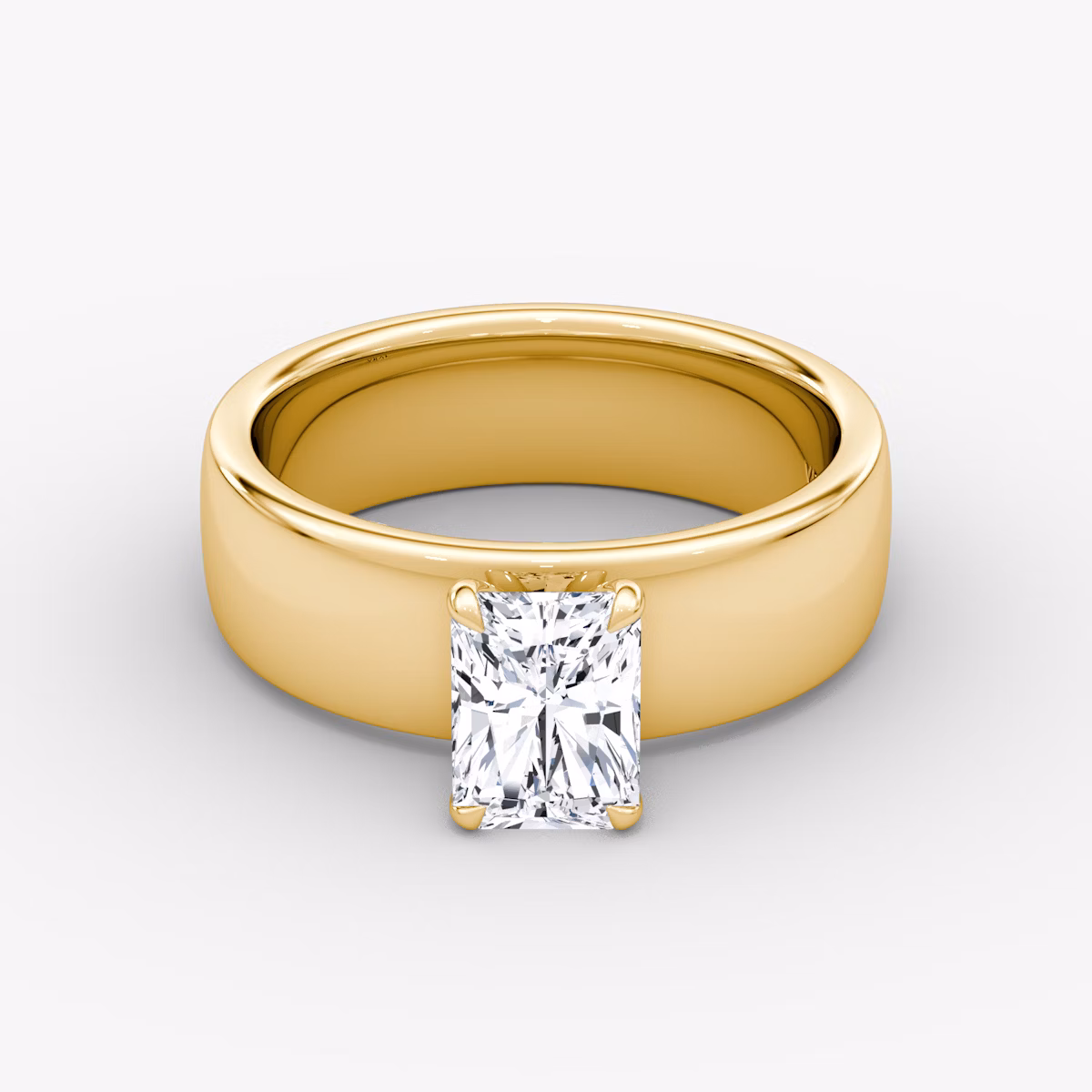 Cigar Band Solitaire solitaire in 18k yellow gold with a radiant diamond