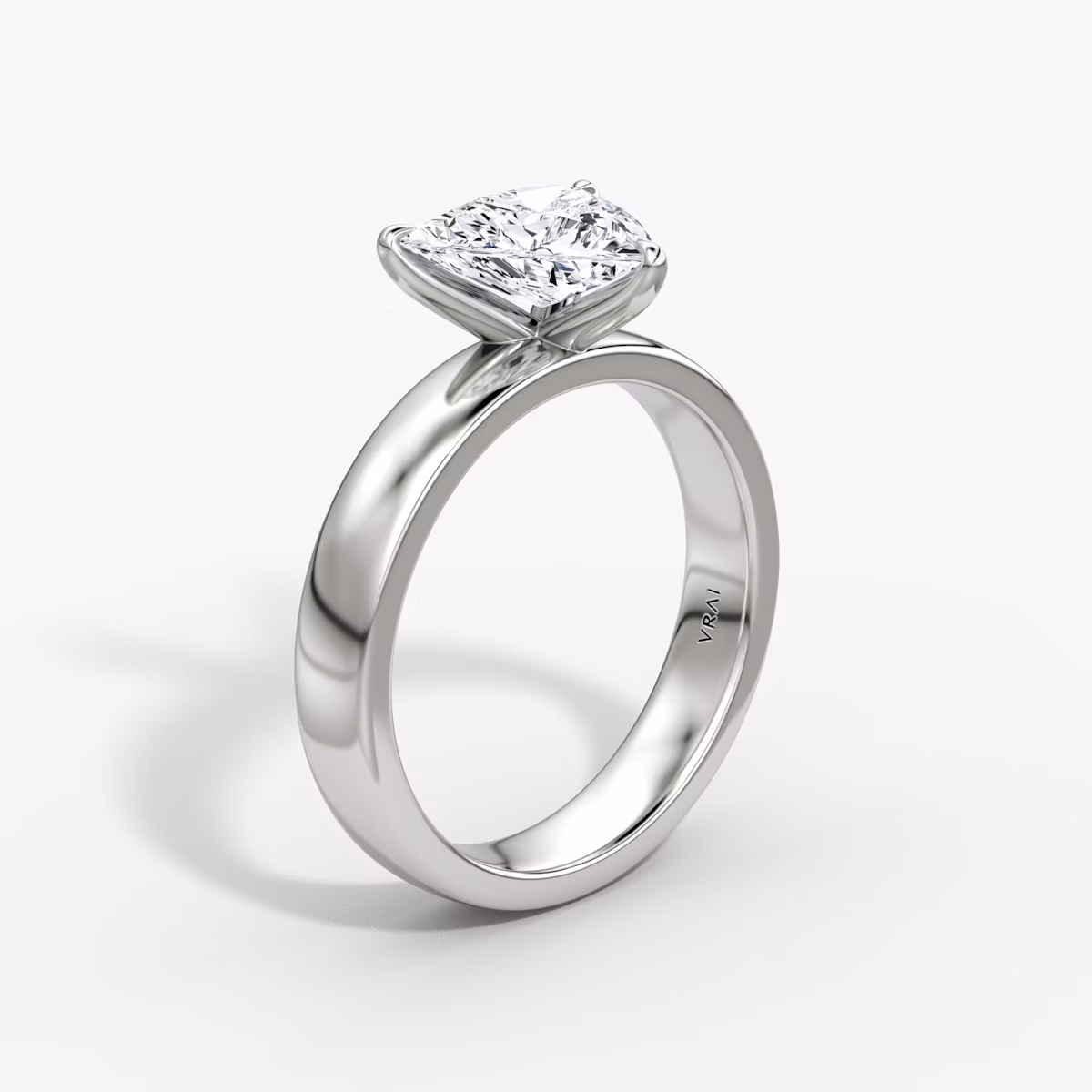 An elegant design with a bold twist highlighting a single VRAI created diamond atop a substantial, sleek platinum or solid gold band. Choose your diamond shape, metal color, and more to make this setting uniquely yours.