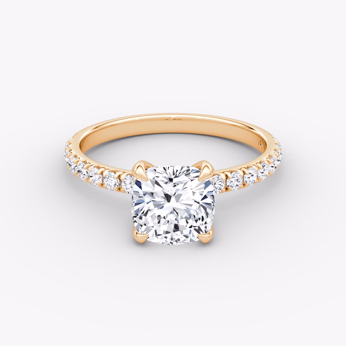 The Classic solitaire in 14k rose gold with a cushion diamond