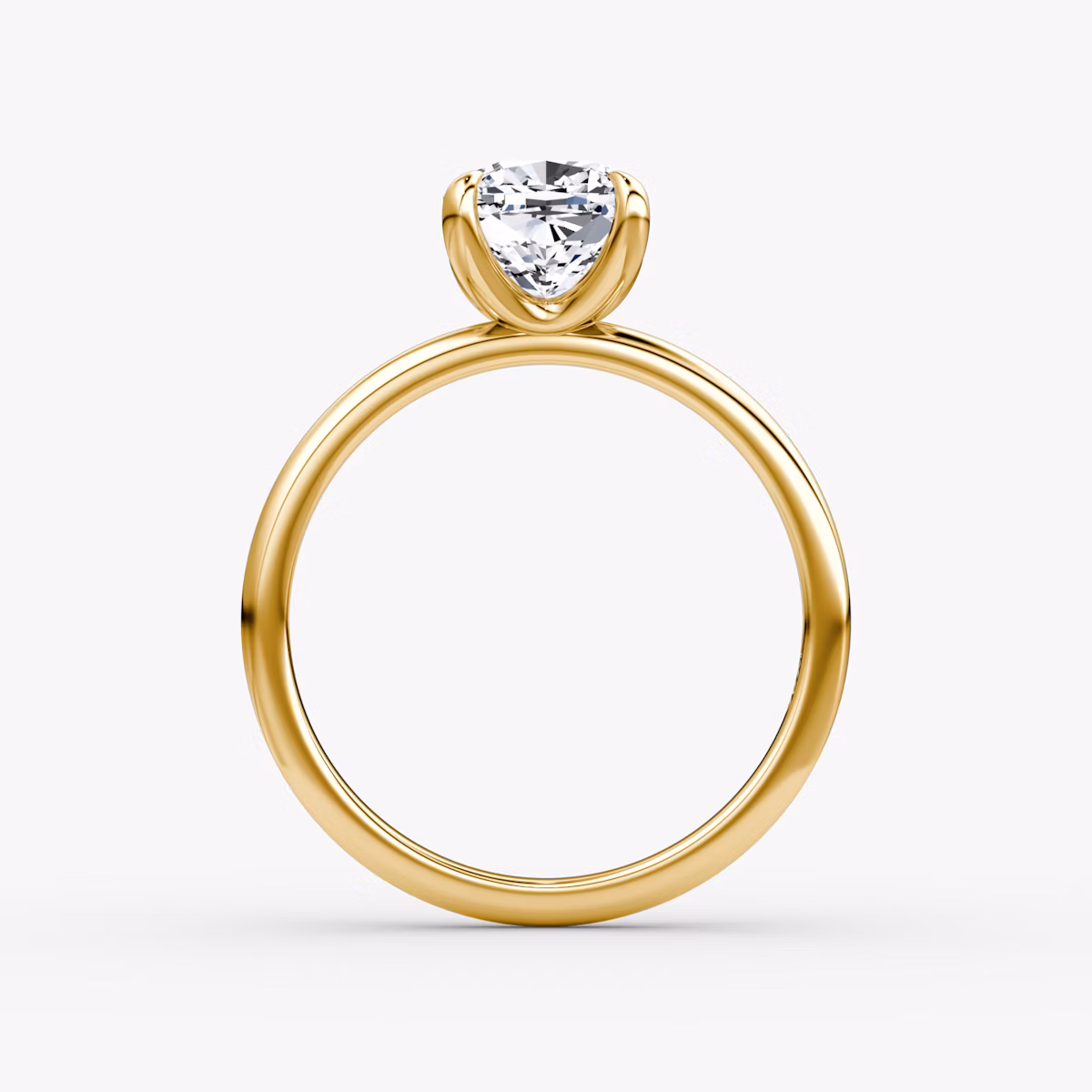 The Classic solitaire in 18k yellow gold with a cushion diamond