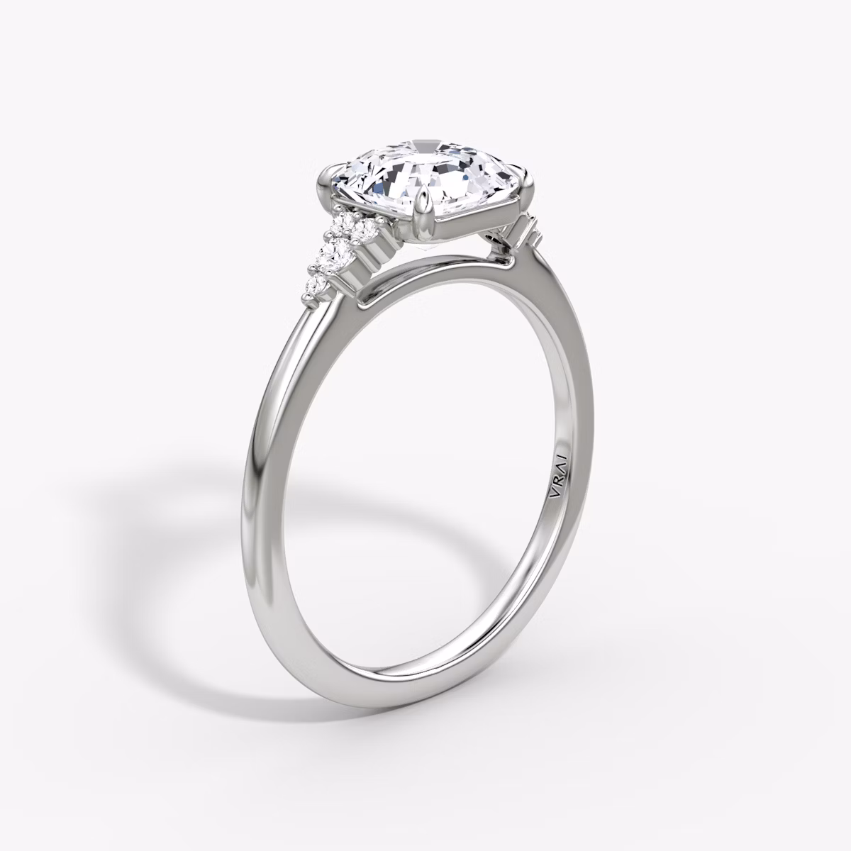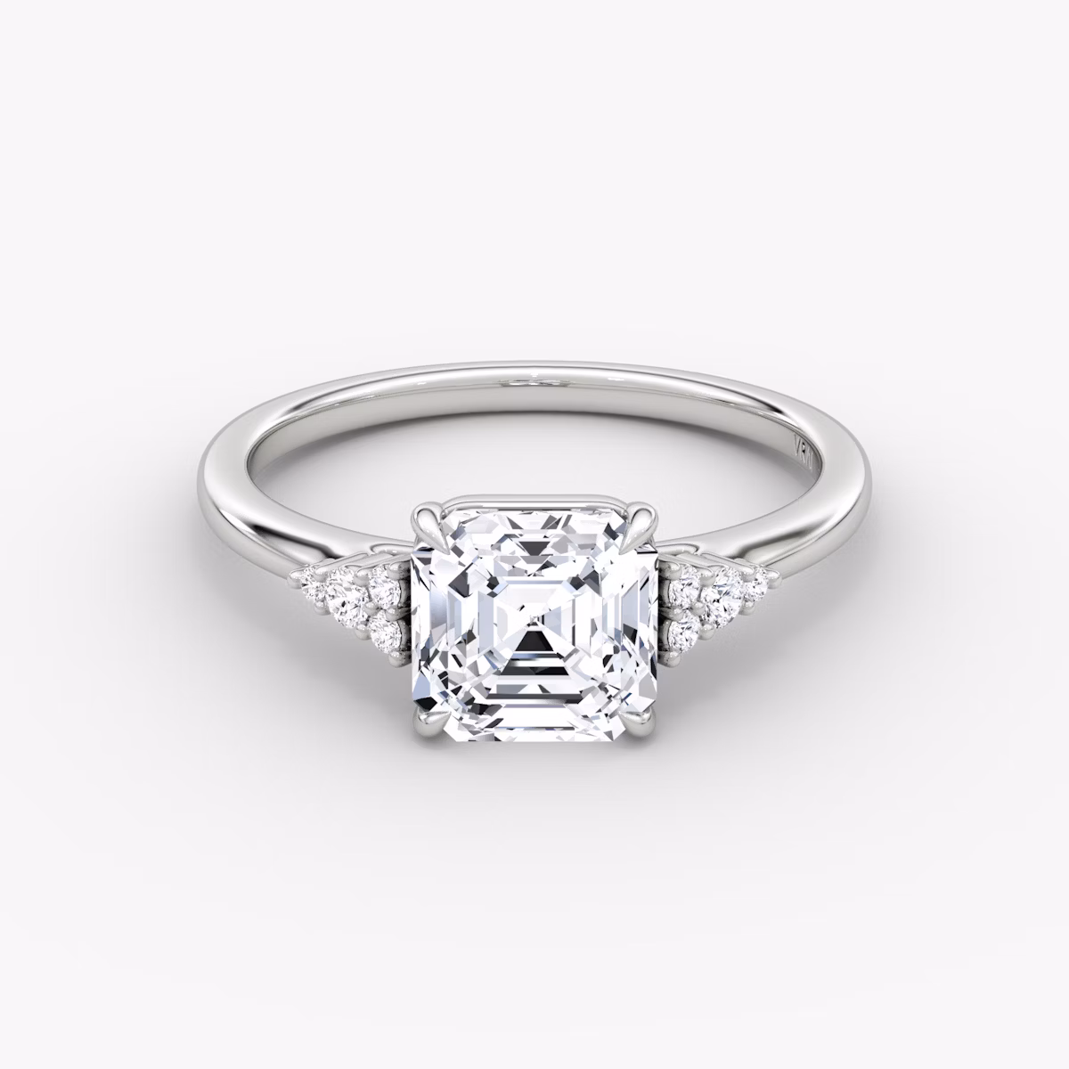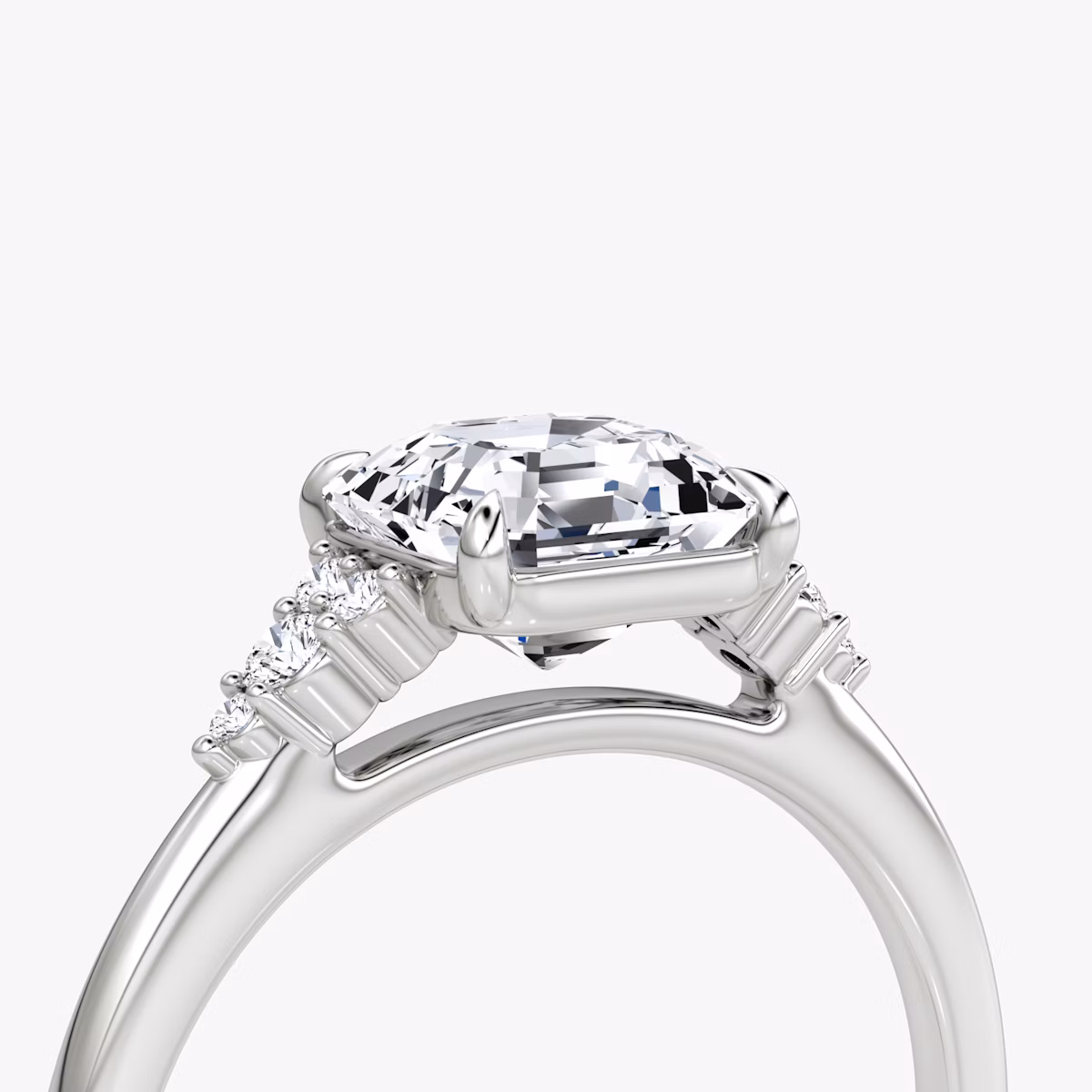 The Side Cluster Cathedral solitaire in platinum with a asscher diamond
