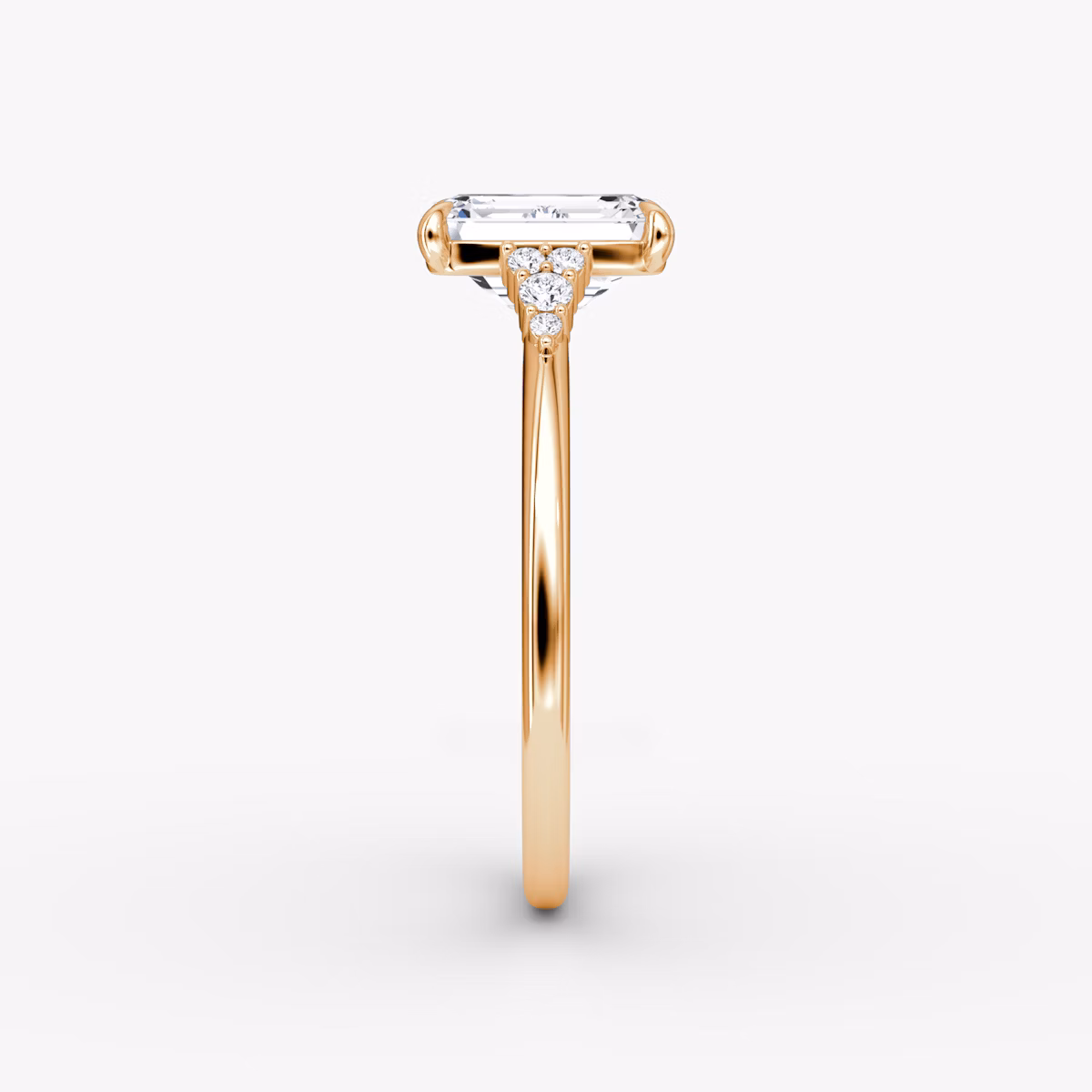 The Side Cluster Cathedral solitaire in 14k rose gold with a emerald diamond