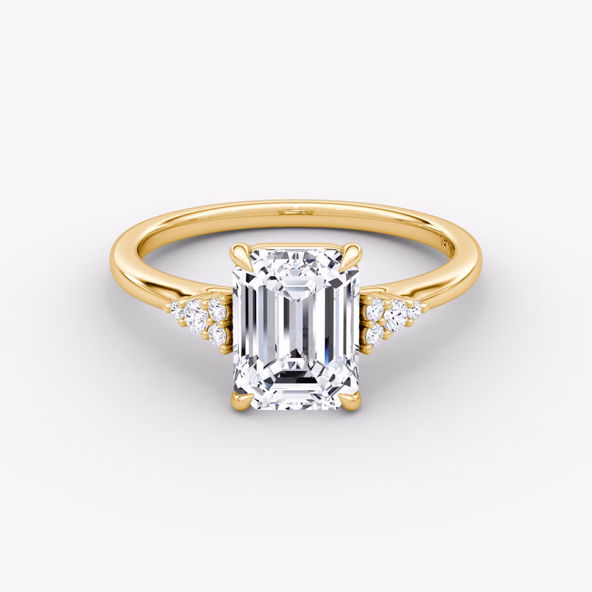 The Side Cluster Cathedral solitaire in 18k yellow gold with a emerald diamond