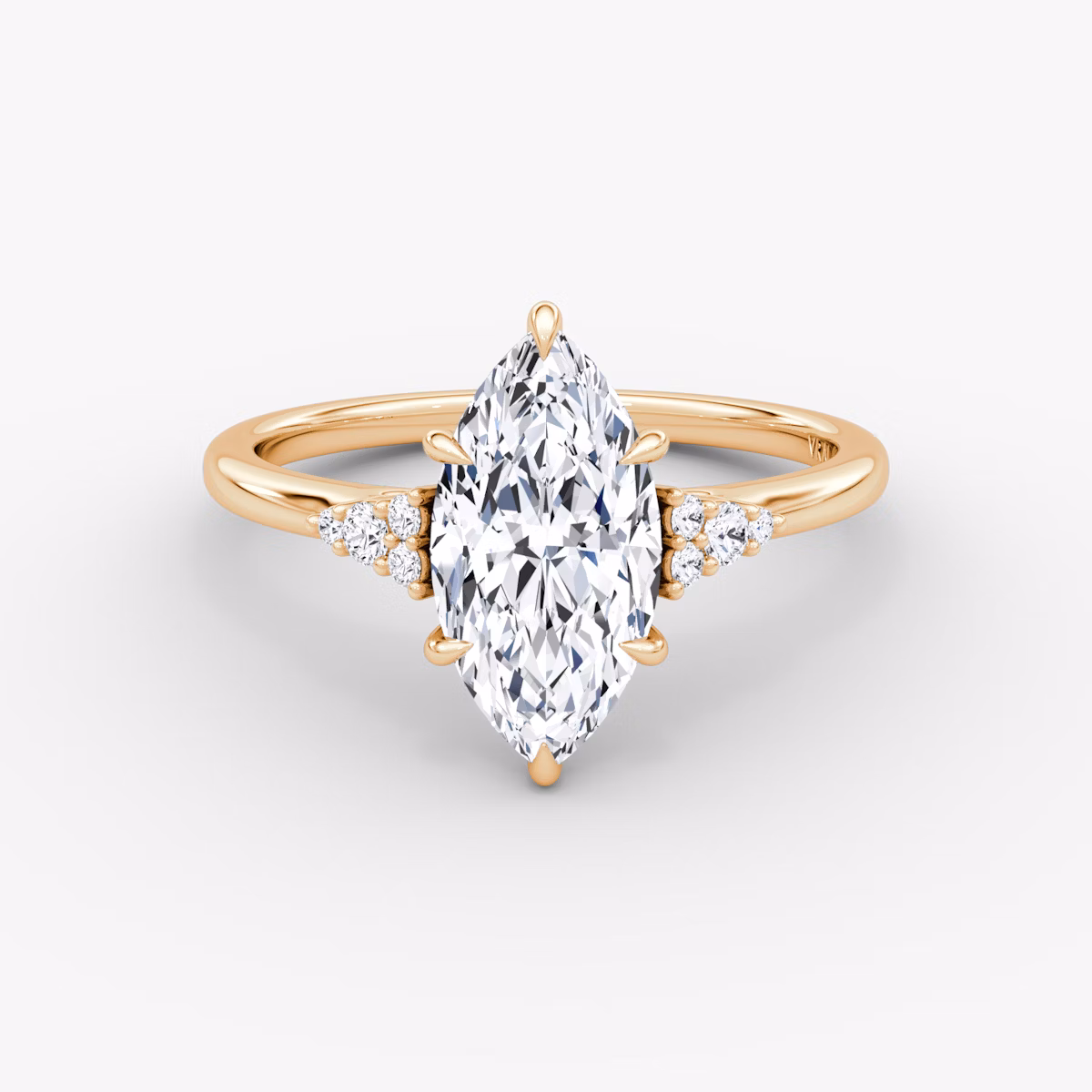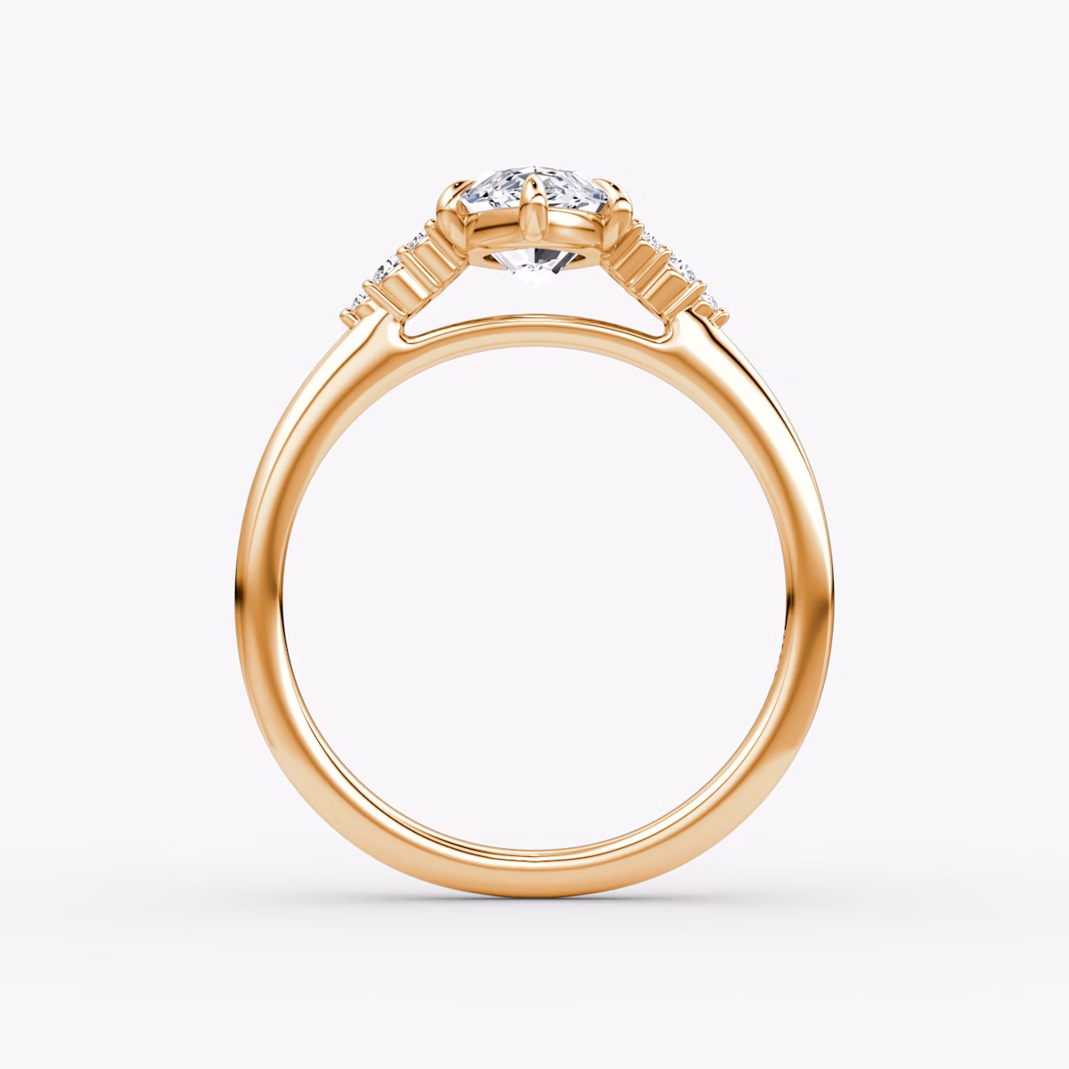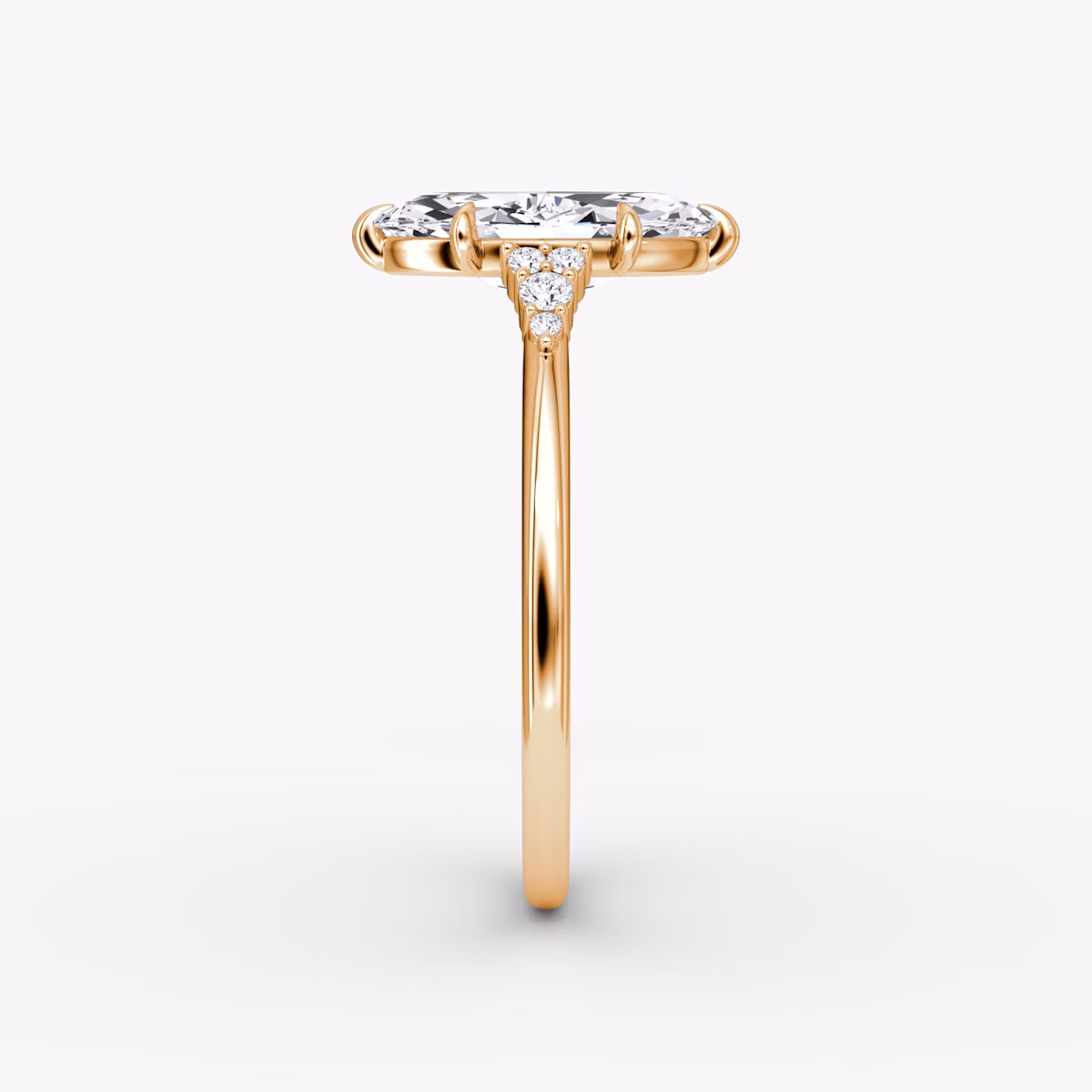The Side Cluster Cathedral solitaire in 14k rose gold with a marquise diamond