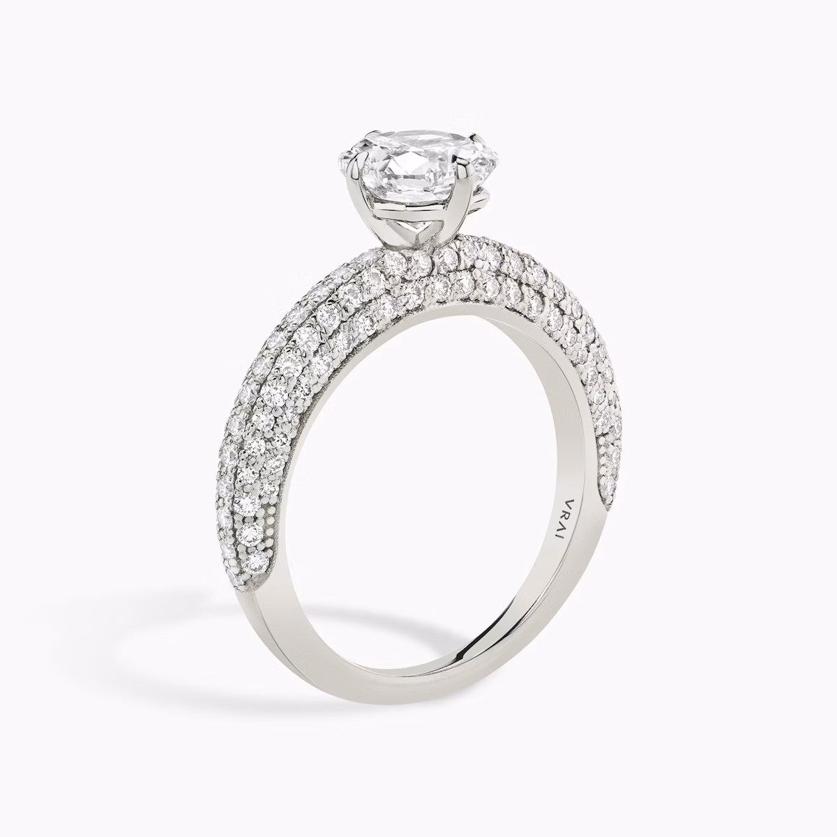 The Curator engagement ring is decidedly different from any other design in our collection. A freshly rounded band balances symmetry and substance, creating a pleasing proportion with an artistic edge. Our cardinal setting is a distinct and thoughtful detail that puts your diamond’s brilliance on display.