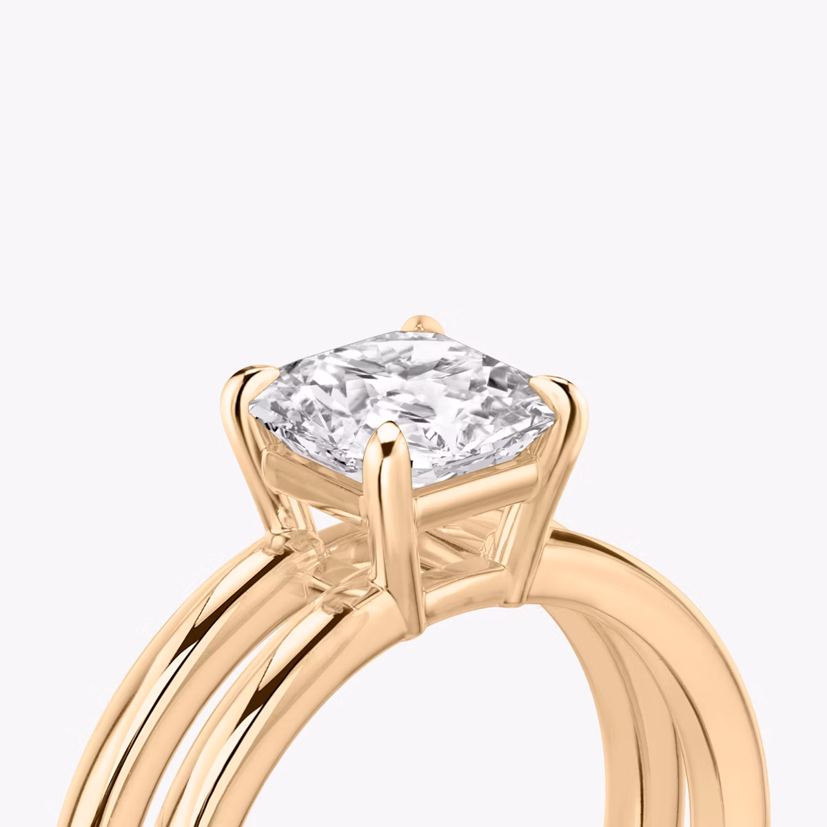 The Double Band solitaire in 14k rose gold with a asscher diamond