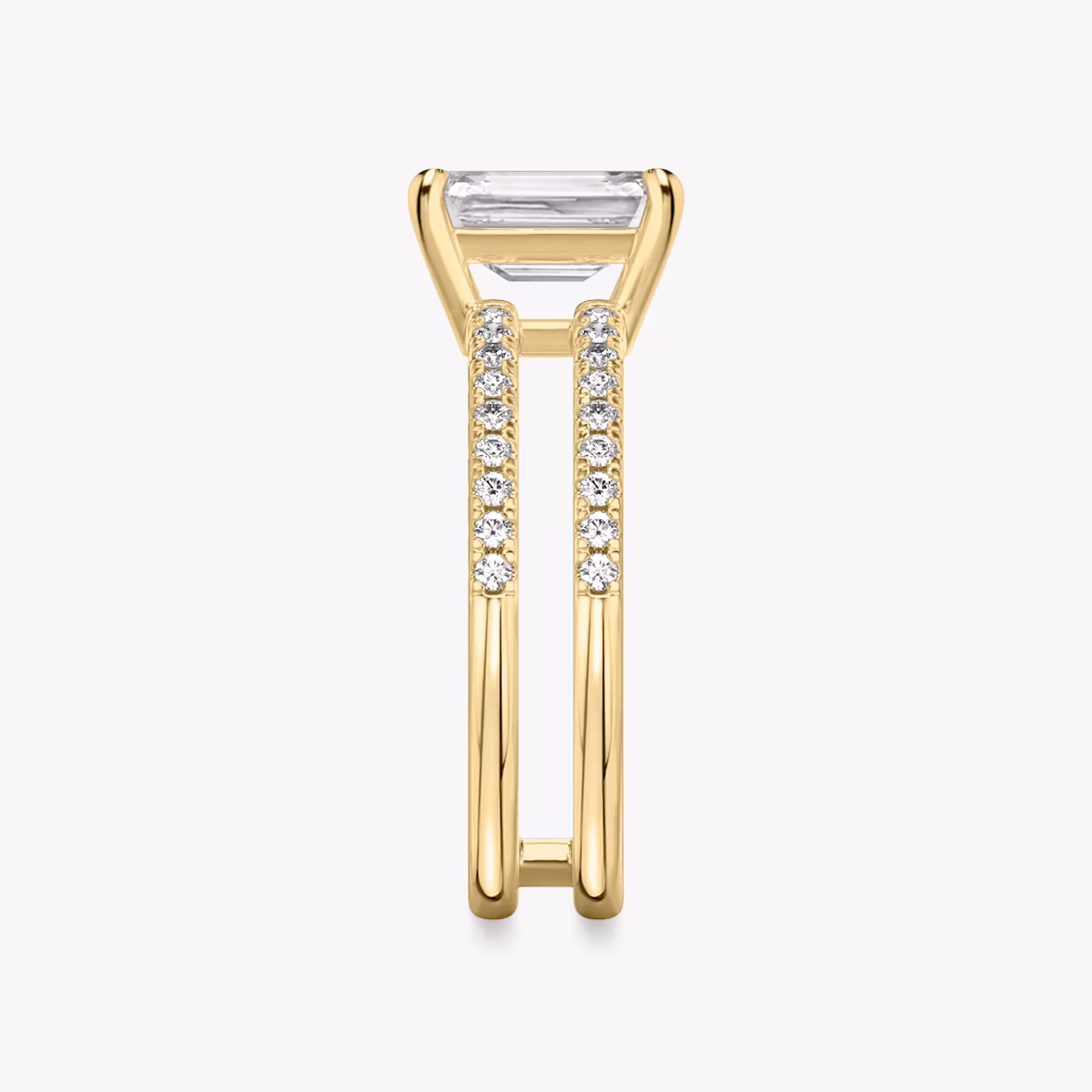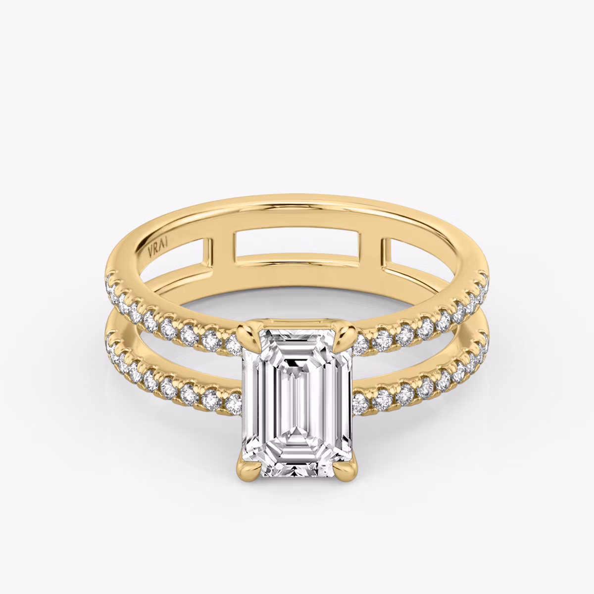 The Double Band solitaire in 18k yellow gold with a emerald diamond