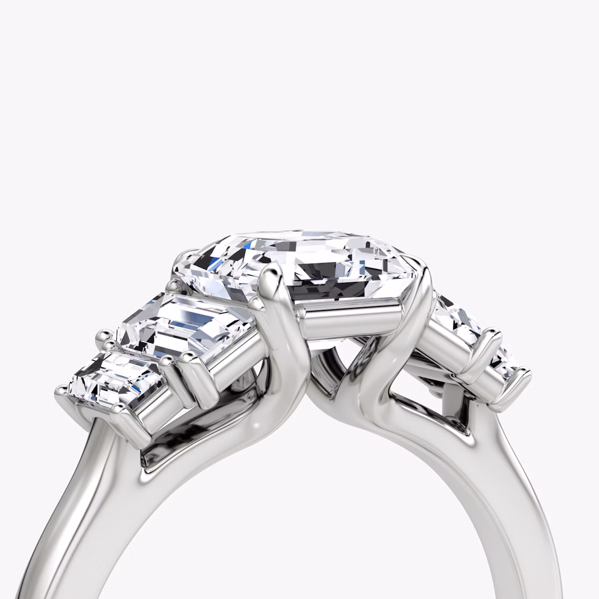 The Five Stone Heirloom diamond ring in 18k white gold with a asscher diamond