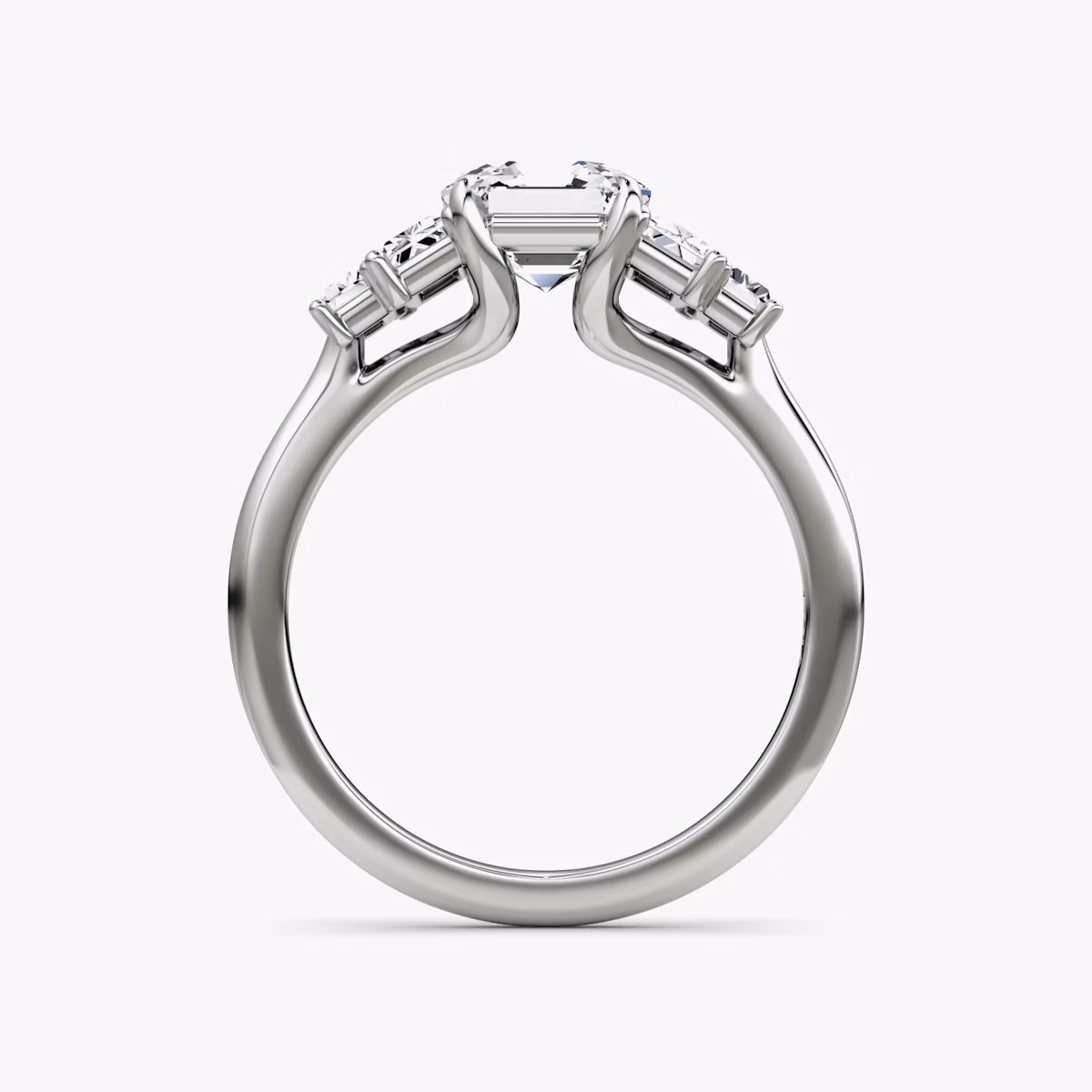 Four Baguette shaped side stones align to enhance the brilliance of your center VRAI created diamond in a statement-making setting that declares your love to the world. Select metal color and your favorite center diamond shape; VRAI's design team will match your side stones in color grade for the perfect final touch.