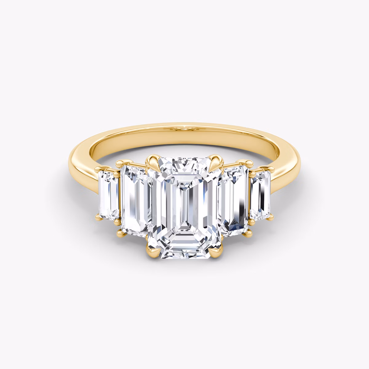 The Five Stone Heirloom diamond ring in 18k yellow gold with a emerald diamond