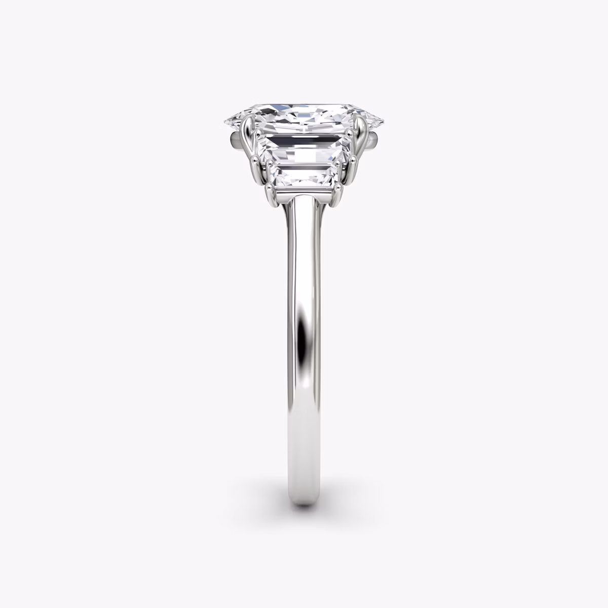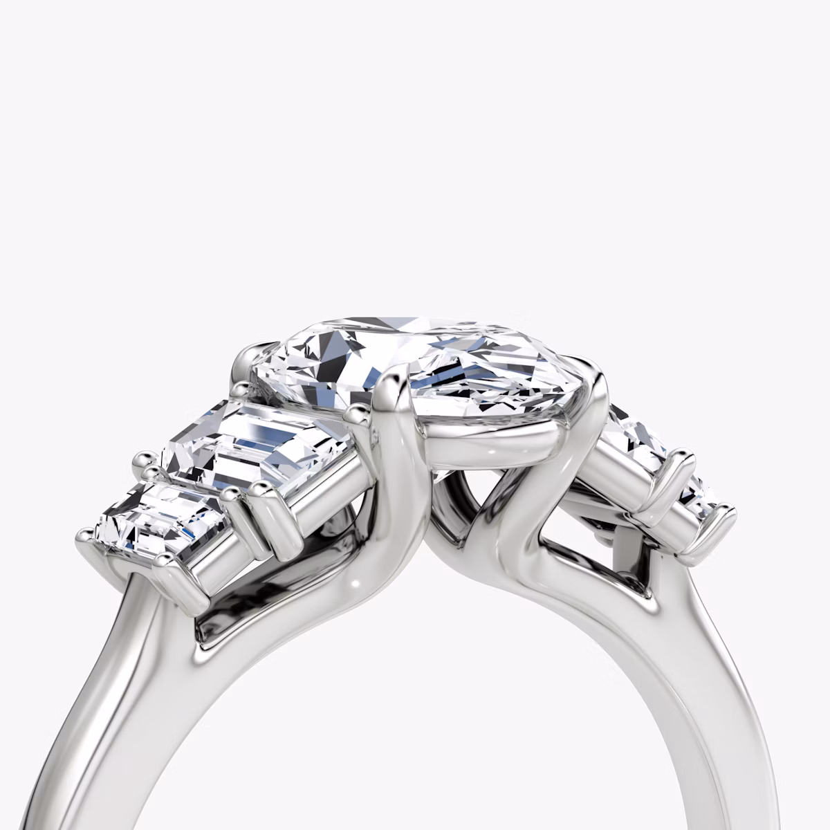 Four Baguette shaped side stones align to enhance the brilliance of your center VRAI created diamond in a statement-making setting that declares your love to the world. Select metal color and your favorite center diamond shape; VRAI's design team will match your side stones in color grade for the perfect final touch.
