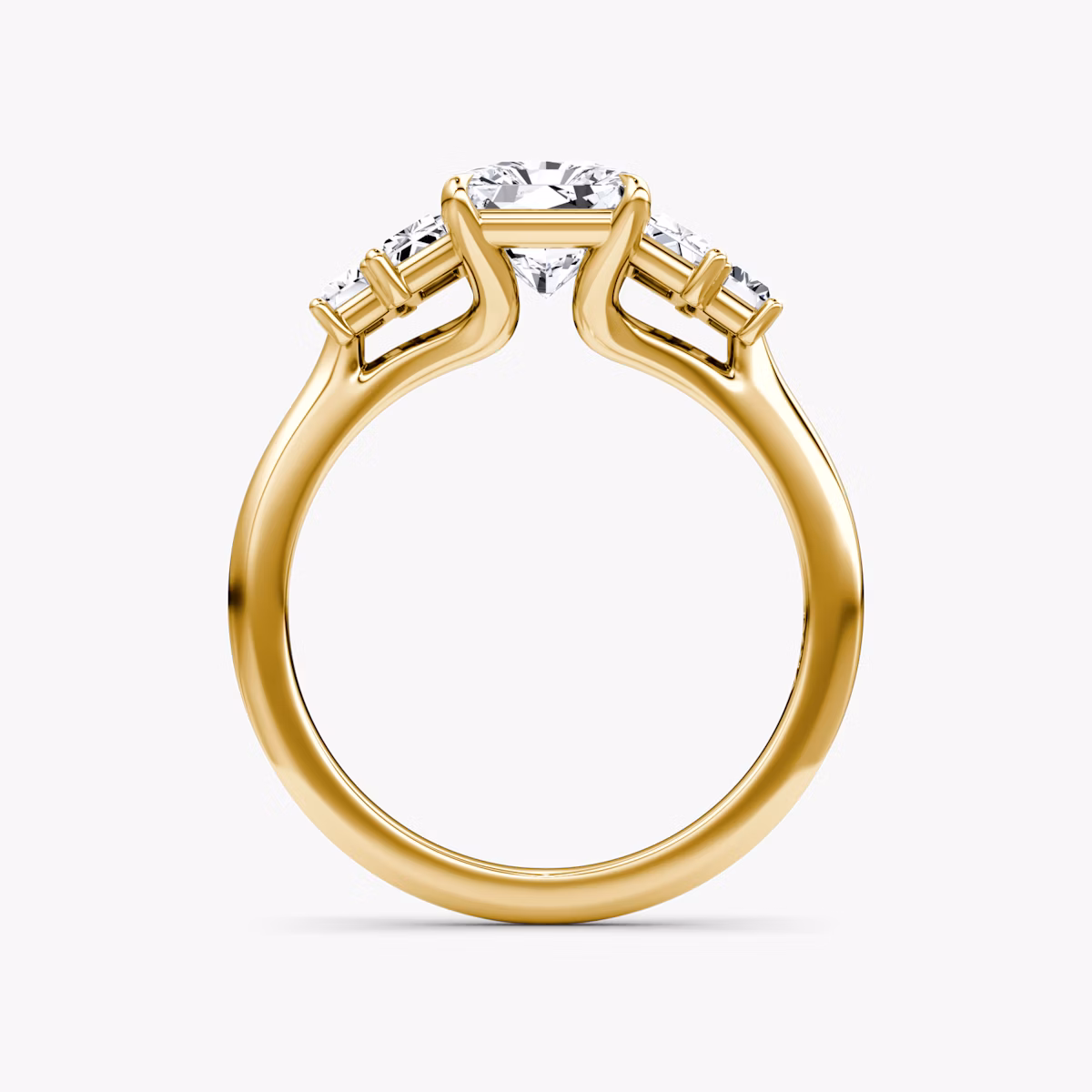 Four Baguette shaped side stones align to enhance the brilliance of your center VRAI created diamond in a statement-making setting that declares your love to the world. Select metal color and your favorite center diamond shape; VRAI's design team will match your side stones in color grade for the perfect final touch.