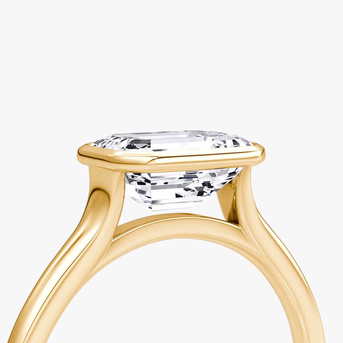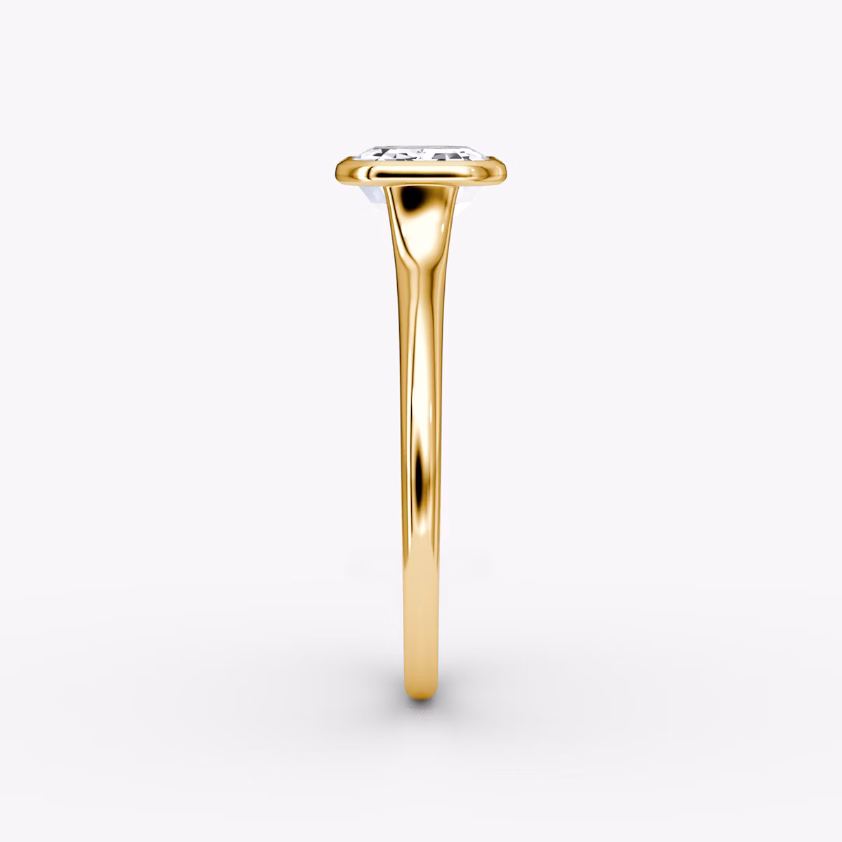 The Flat Edge Bezel solitaire in 18k yellow gold with a emerald diamond