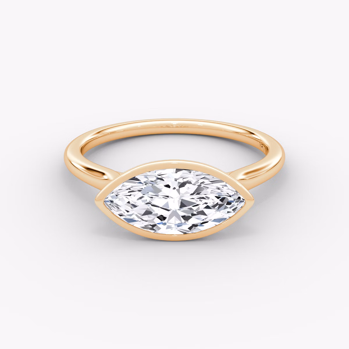 The Flat Edge Bezel solitaire in 14k rose gold with a marquise diamond