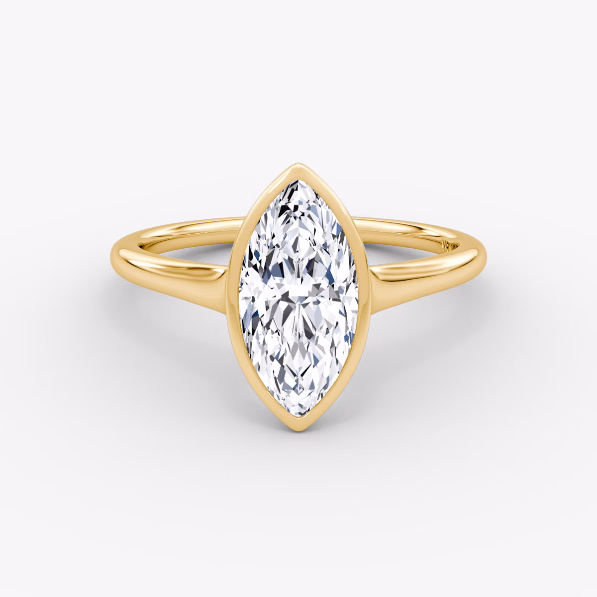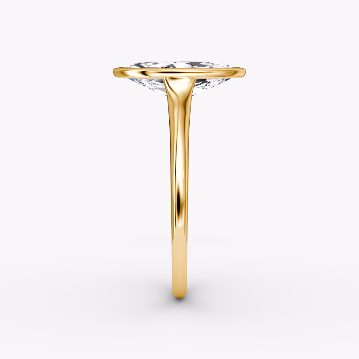 The Flat Edge Bezel solitaire in 18k yellow gold with a marquise diamond