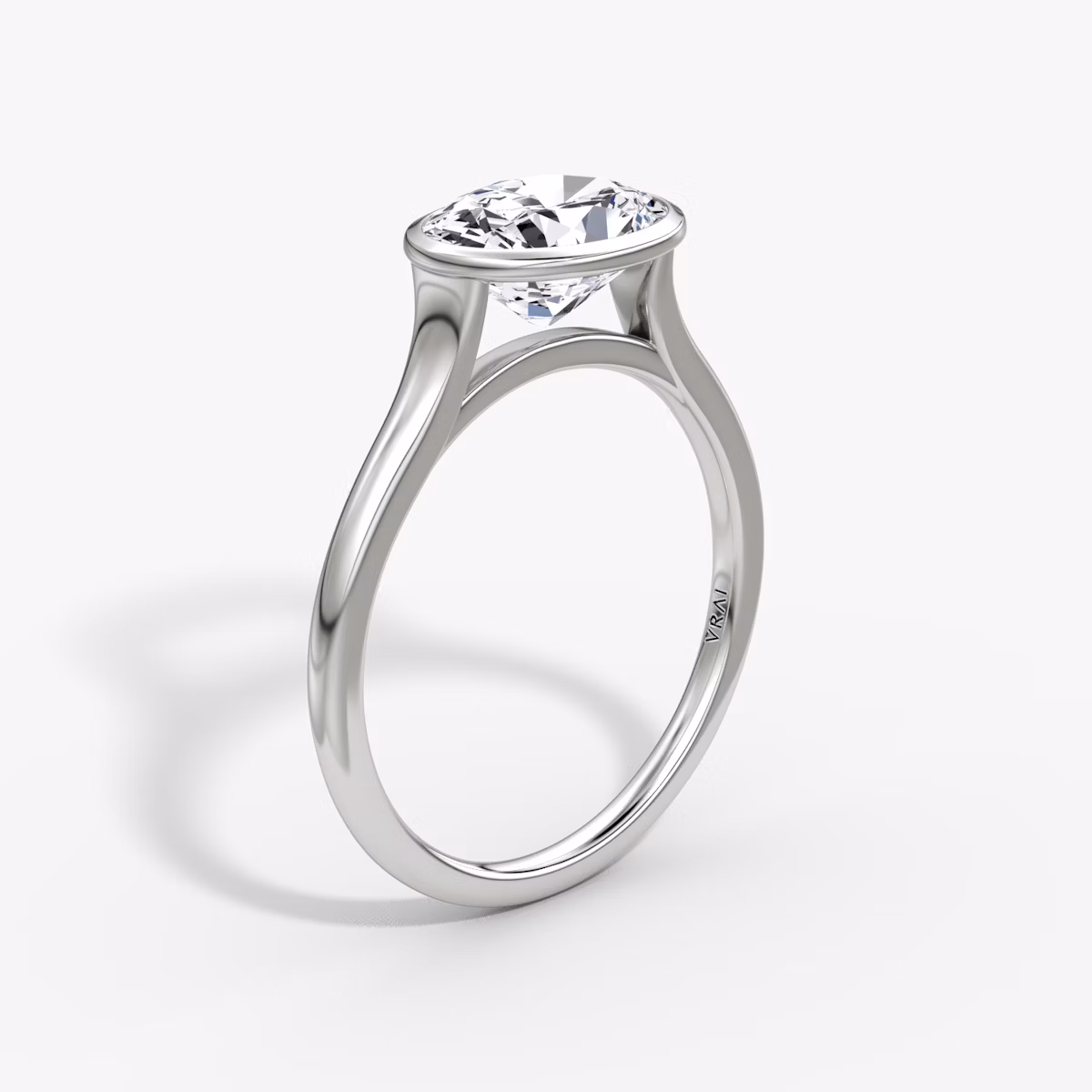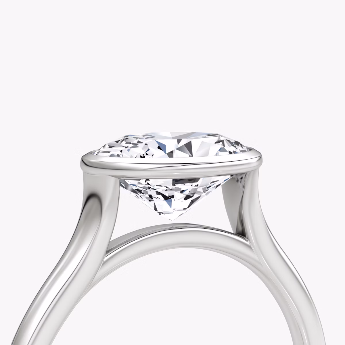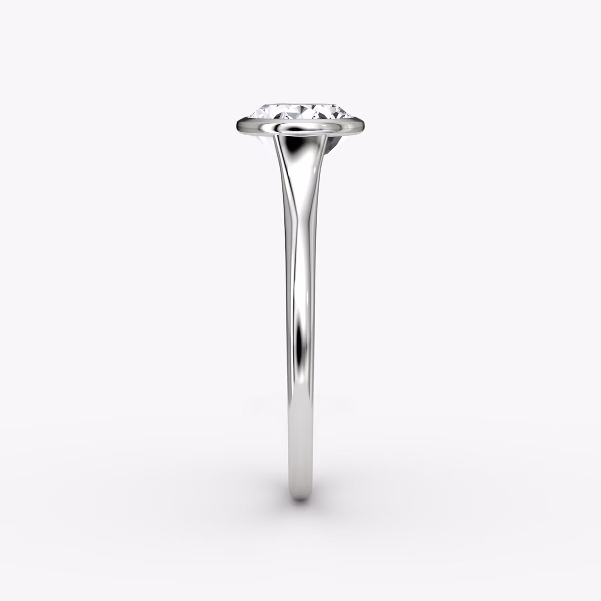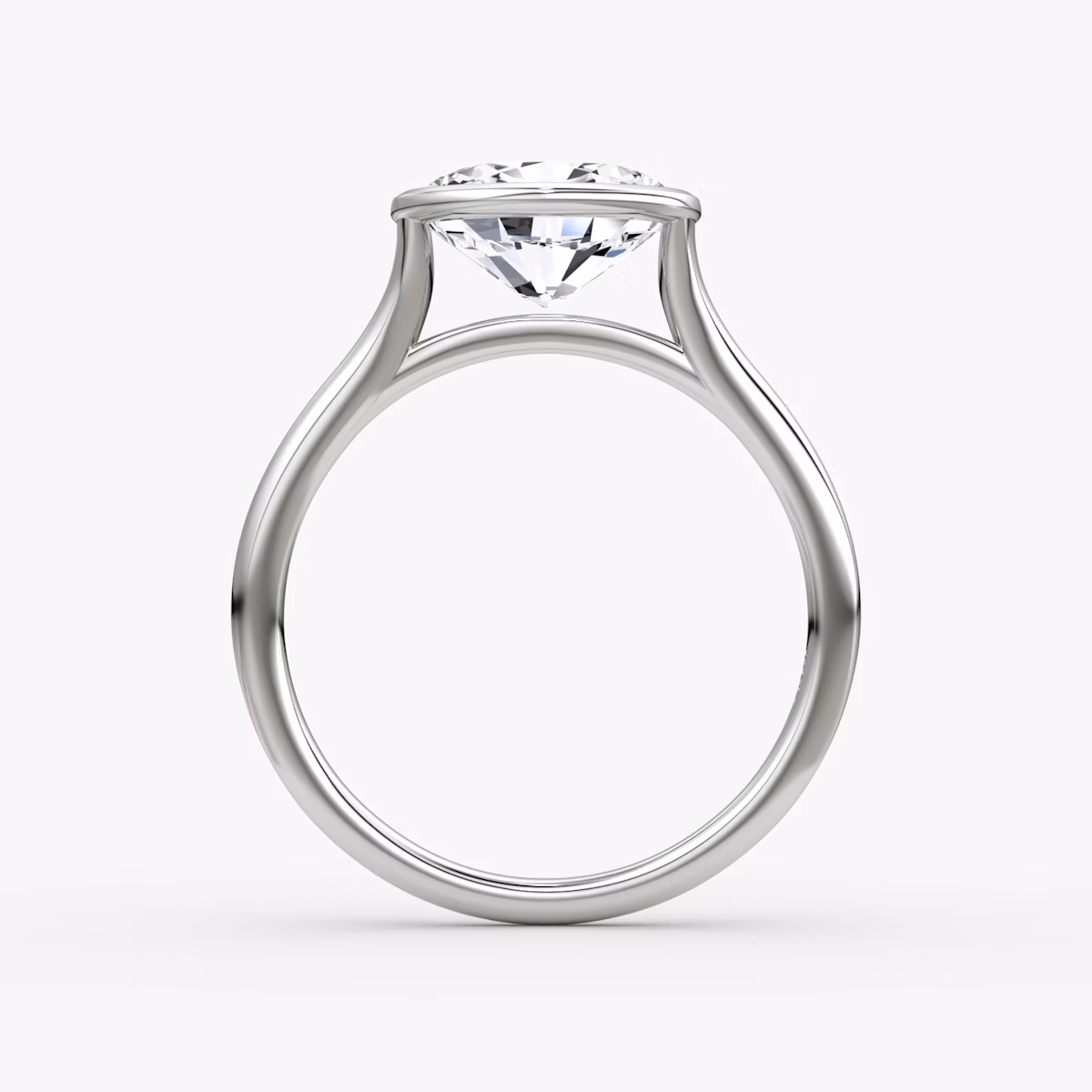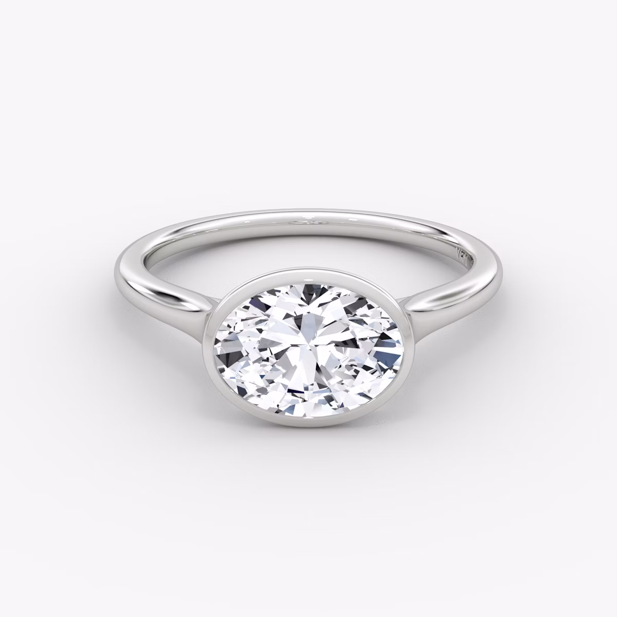 The Flat Edge Bezel solitaire in platinum with a oval diamond