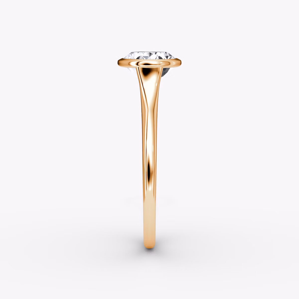 The Flat Edge Bezel solitaire in 14k rose gold with a oval diamond