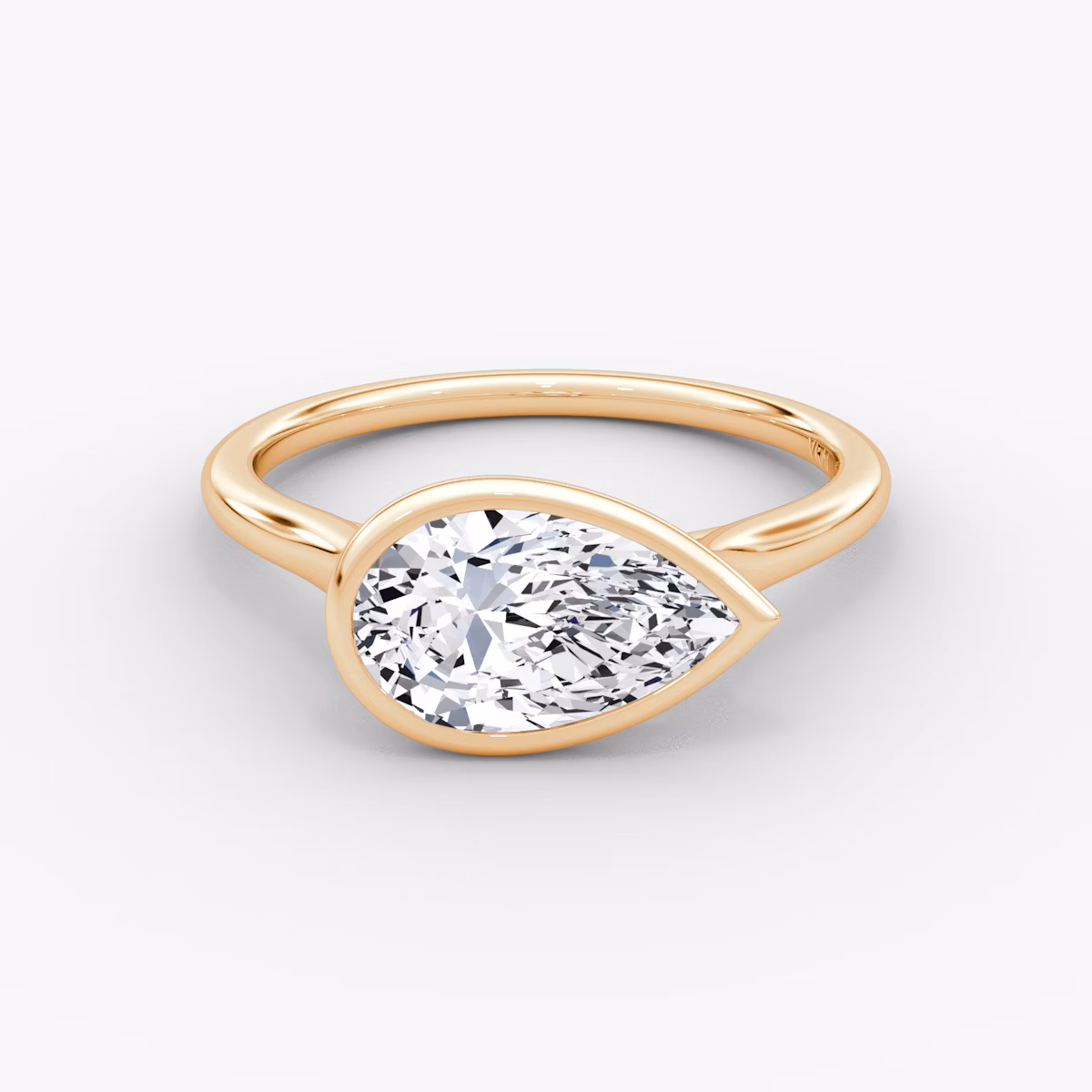 The Flat Edge Bezel solitaire in 14k rose gold with a pear diamond