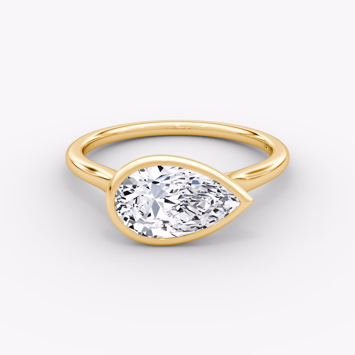 The Flat Edge Bezel solitaire in 18k yellow gold with a pear diamond