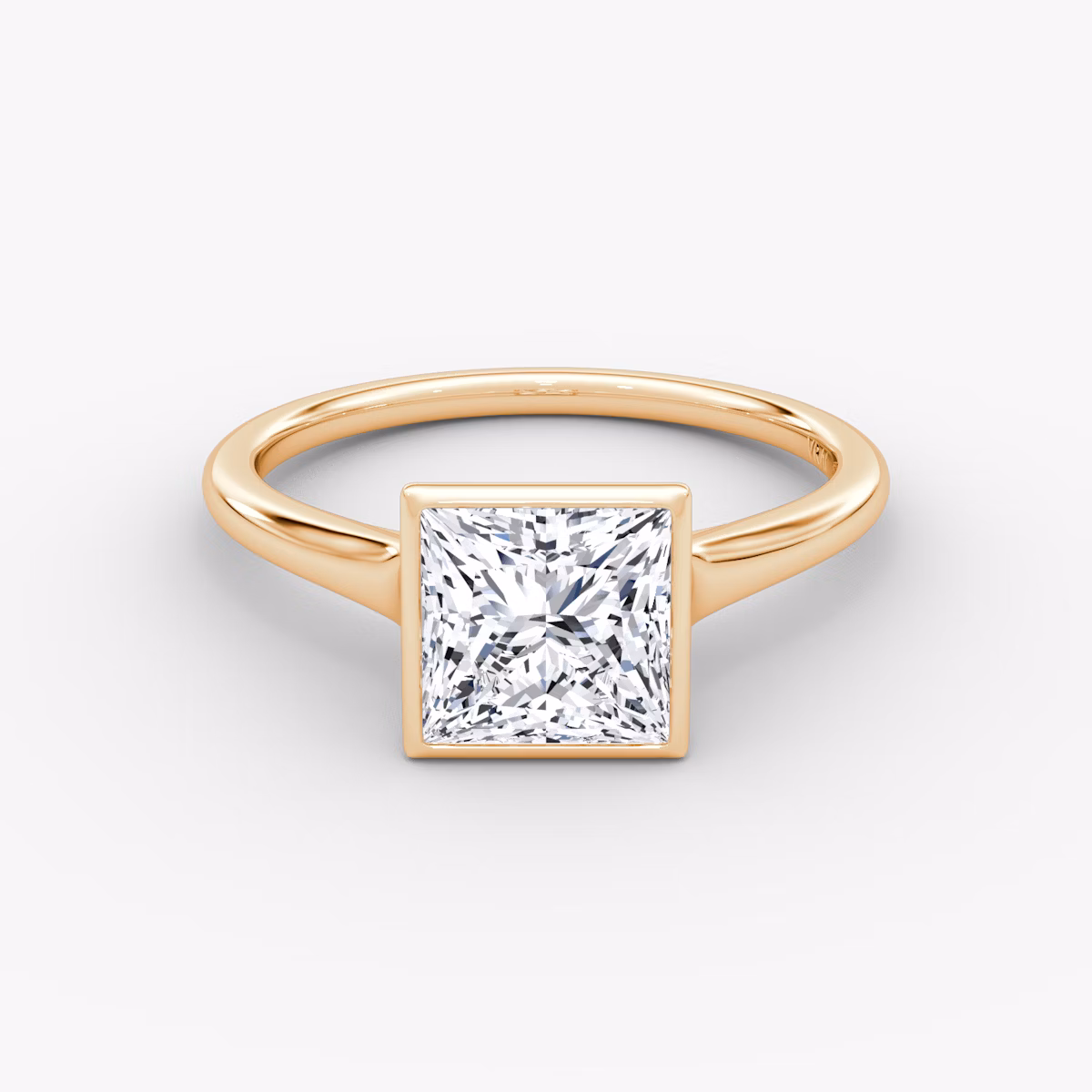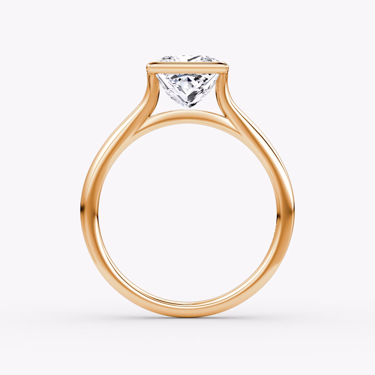 The Flat Edge Bezel solitaire in 14k rose gold with a princess diamond