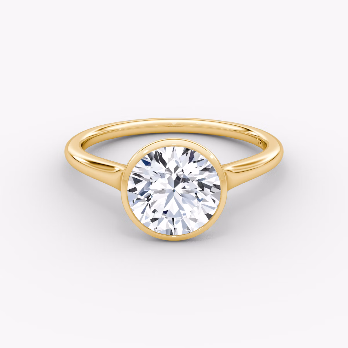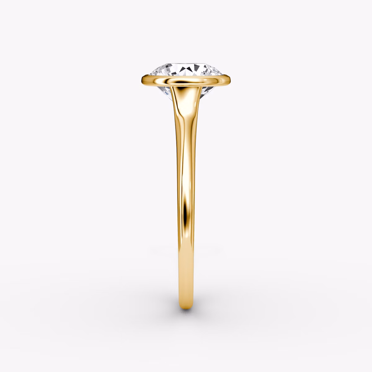 The Flat Edge Bezel solitaire in 18k yellow gold with a round brilliant diamond