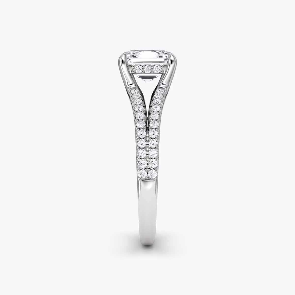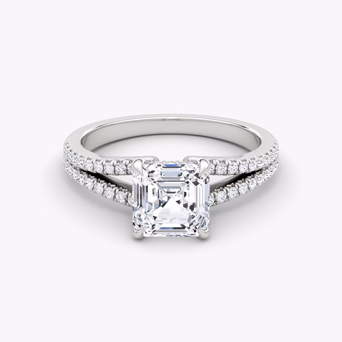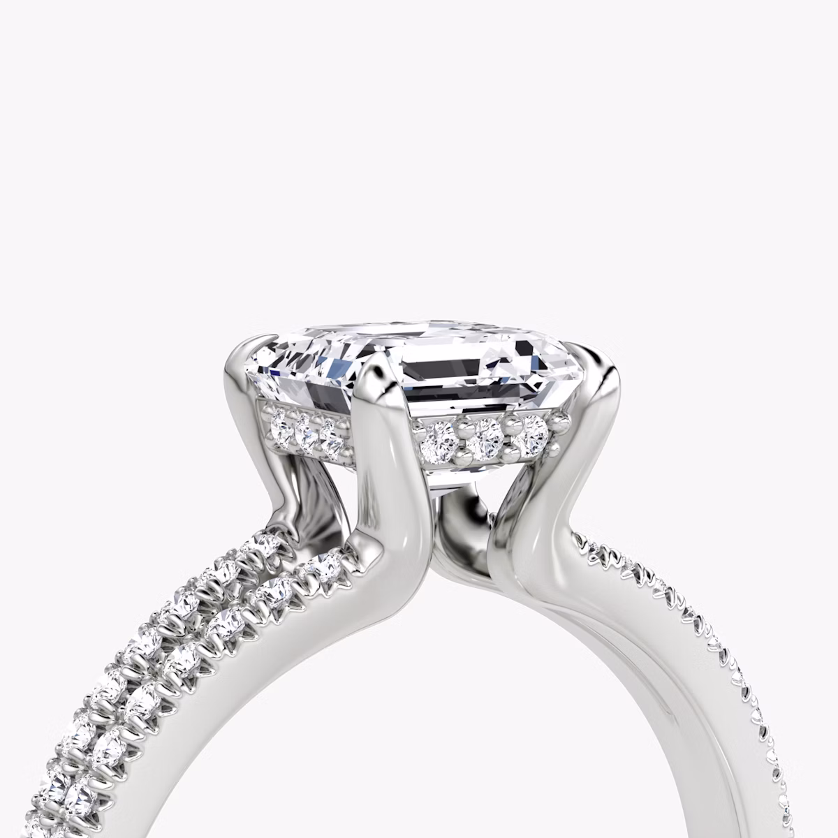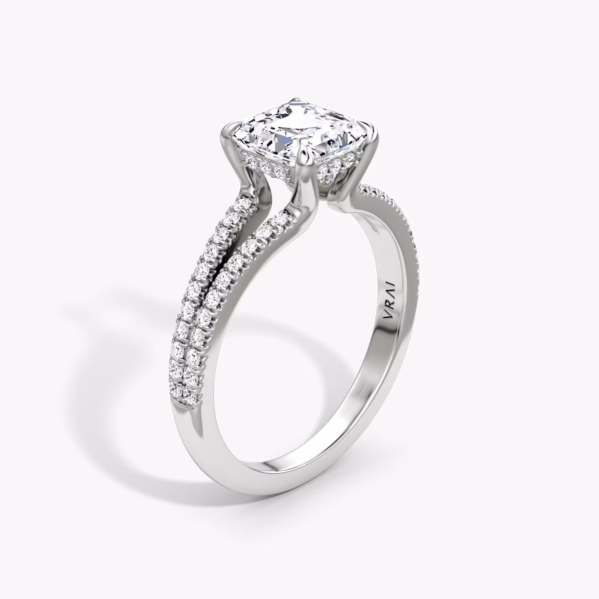The Floating Split Band solitaire in 18k white gold with a asscher diamond