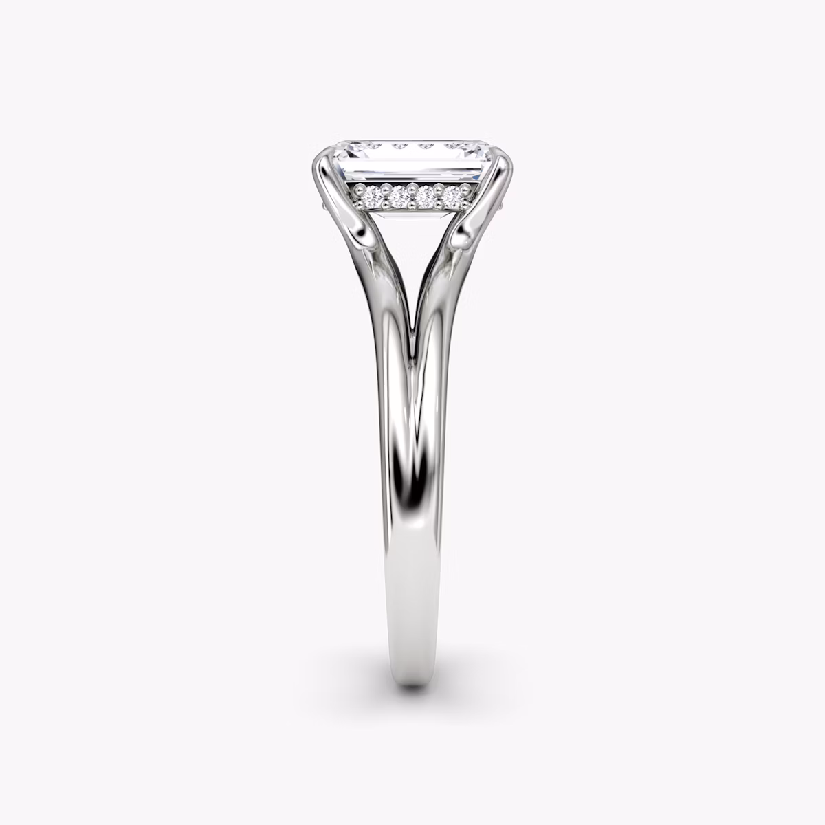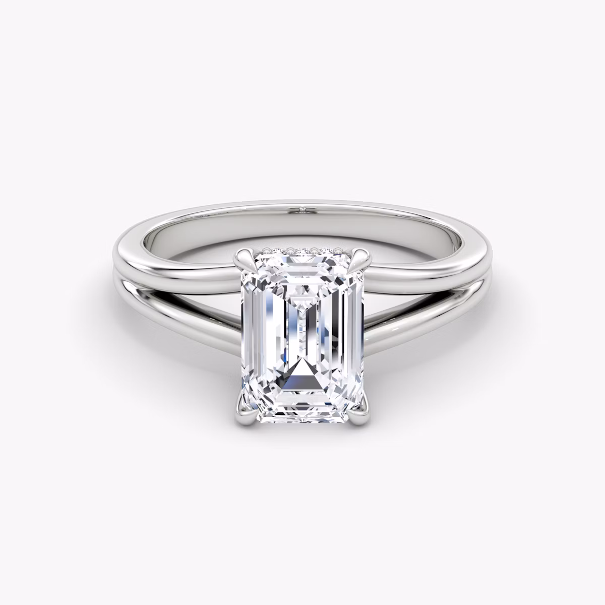 The Floating Split Band solitaire in 18k white gold with a emerald diamond