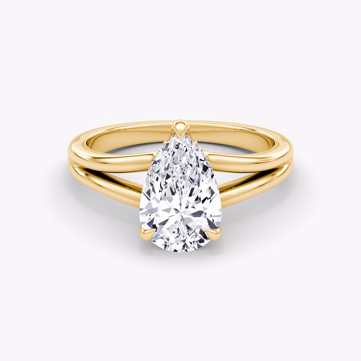 The Floating Split Band solitaire in 18k yellow gold with a pear diamond