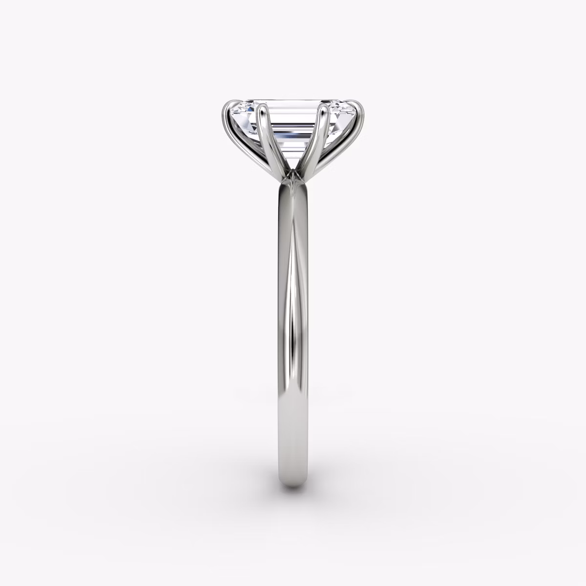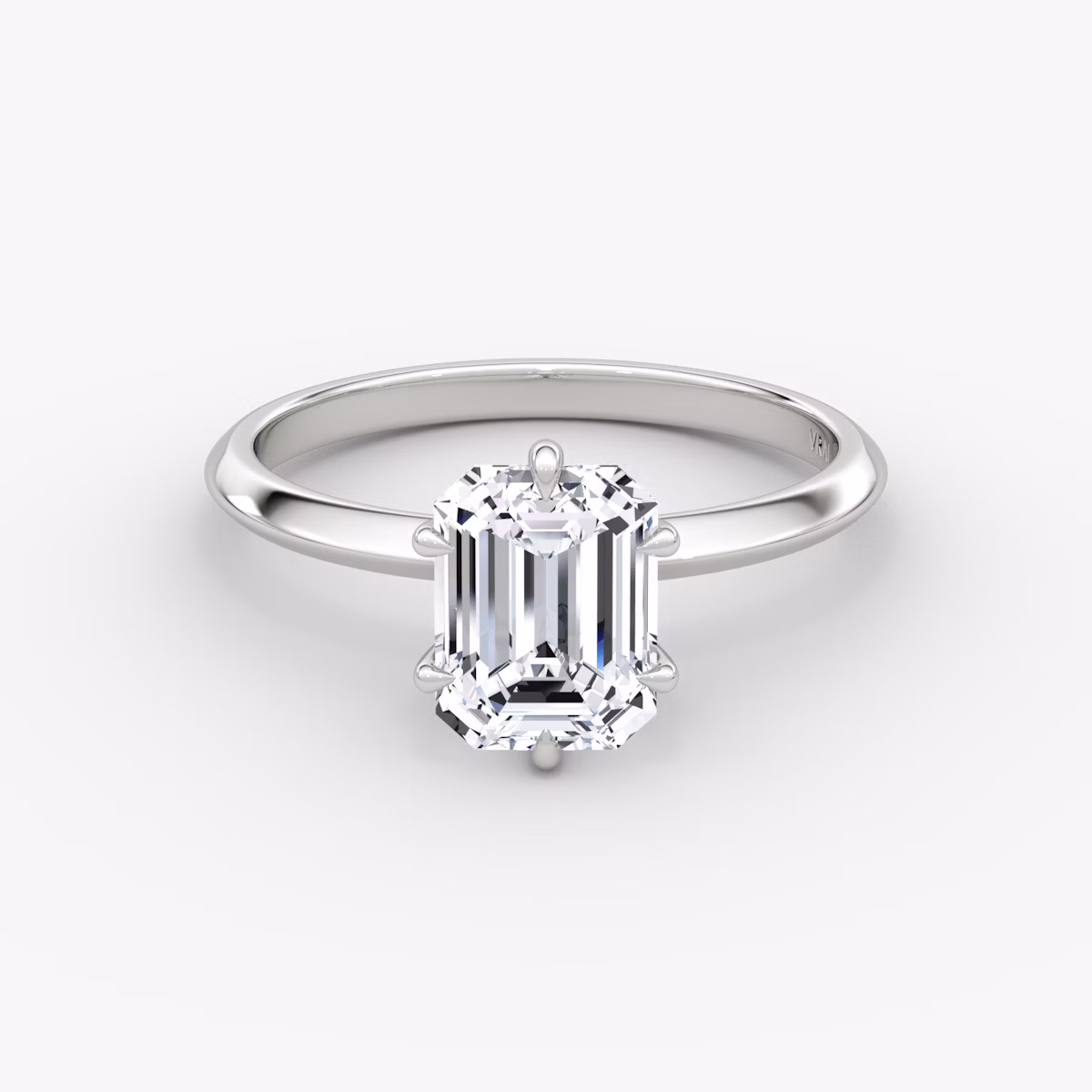 The Knife-Edge solitaire ring in 18k white gold with a emerald diamond