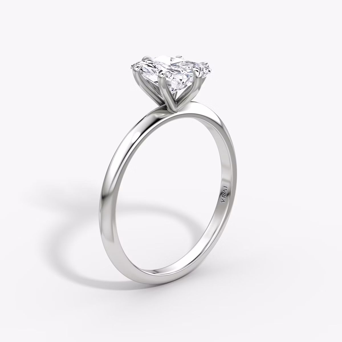 The Knife-Edge solitaire ring in 18k white gold with a radiant diamond