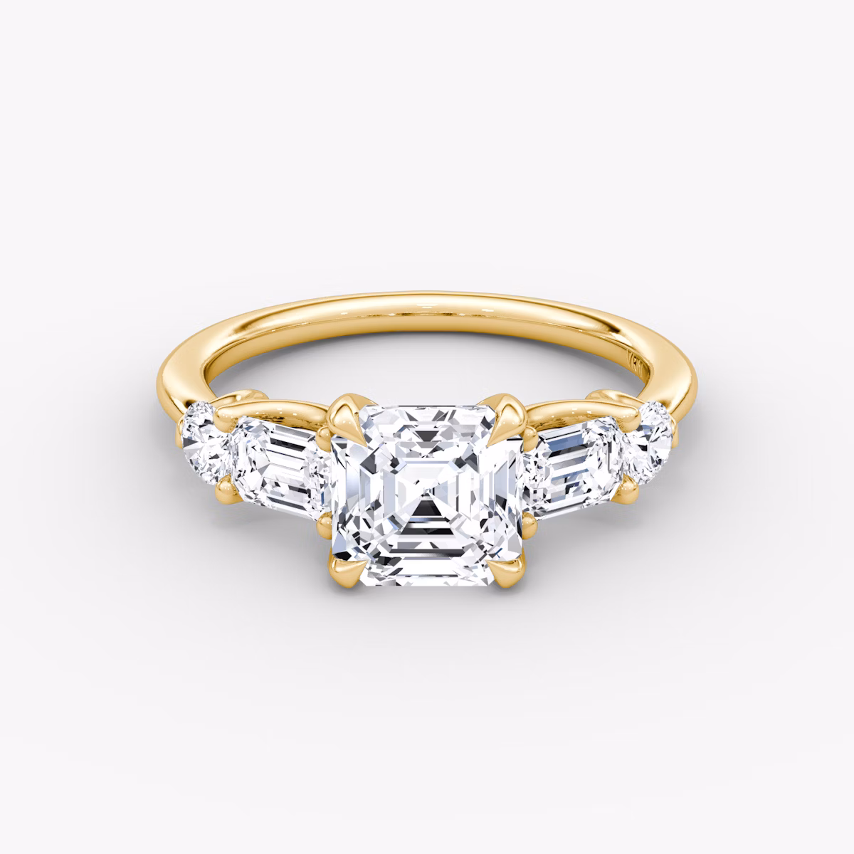 The Mixed Shape engagement ring in 18k yellow gold with a asscher diamond