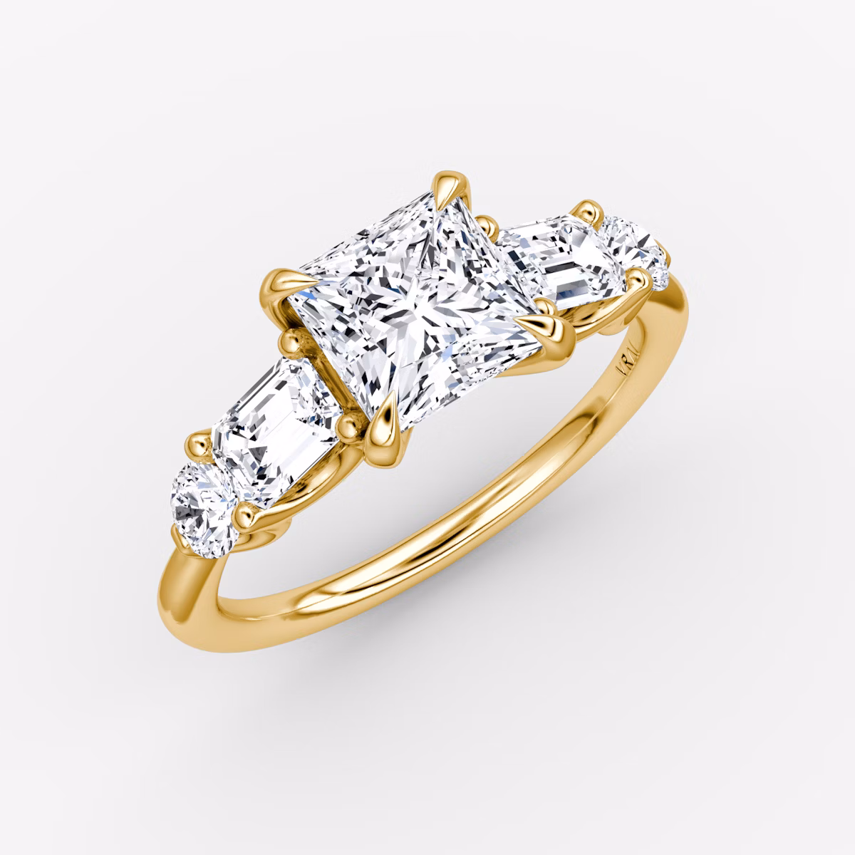 The Mixed Shape engagement ring in 18k yellow gold with a princess diamond