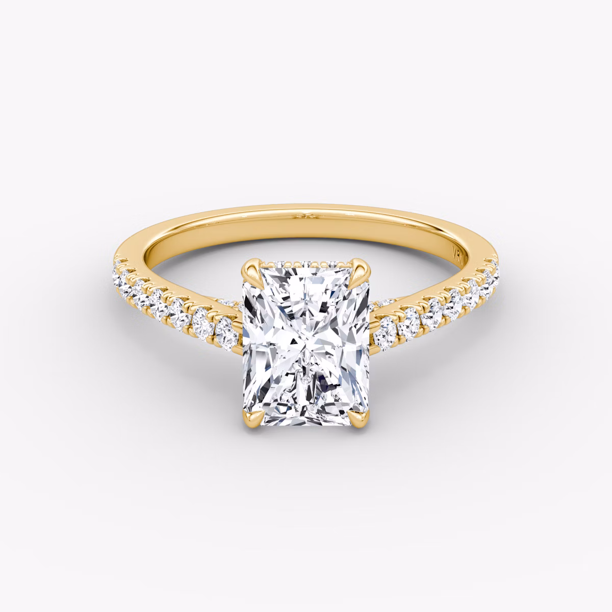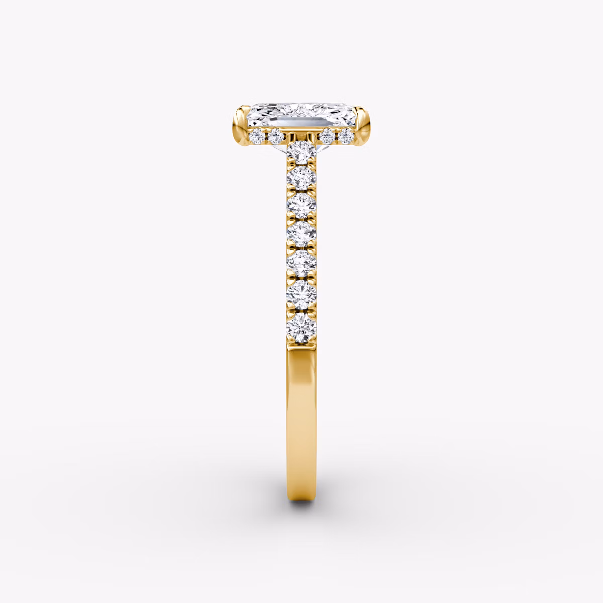 The Pavé Bridge solitaire in 18k yellow gold with a radiant diamond