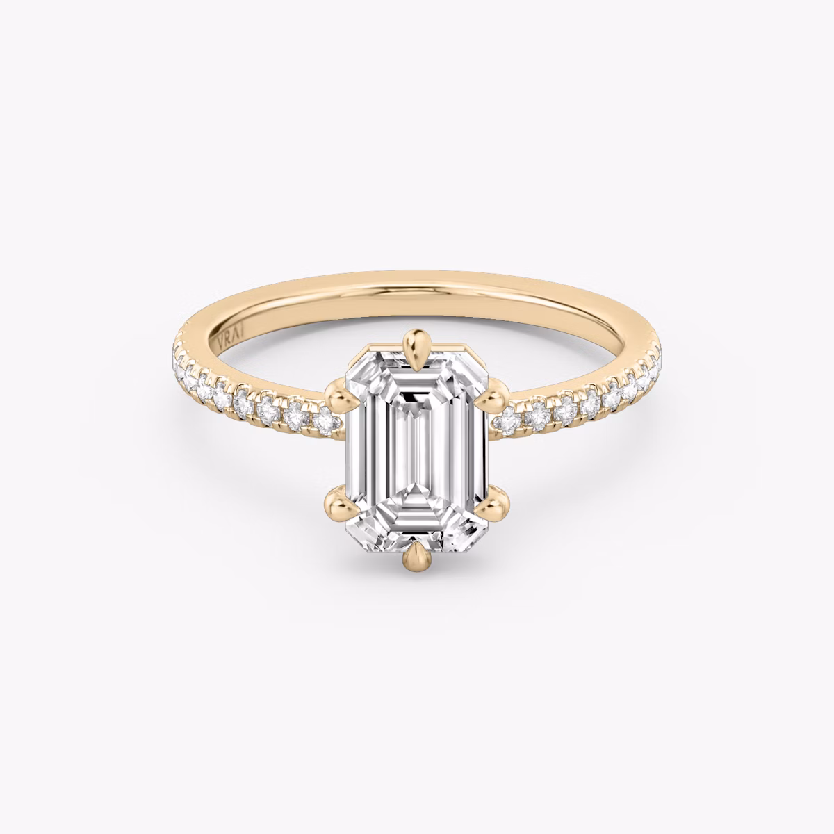 The Signature, reimagined. Elegant and timeless, the Signature 6 Prong setting is designed to accentuate the brilliance and beauty of the center stone while enhancing its security. Designed to sit low on your finger and flush with your wedding band, our signature sling dips slightly below the band, drawing in light so your diamond shines bright. Enhance your ring with an optional hidden halo of pavé set diamonds to create a subtle yet luminous effect.