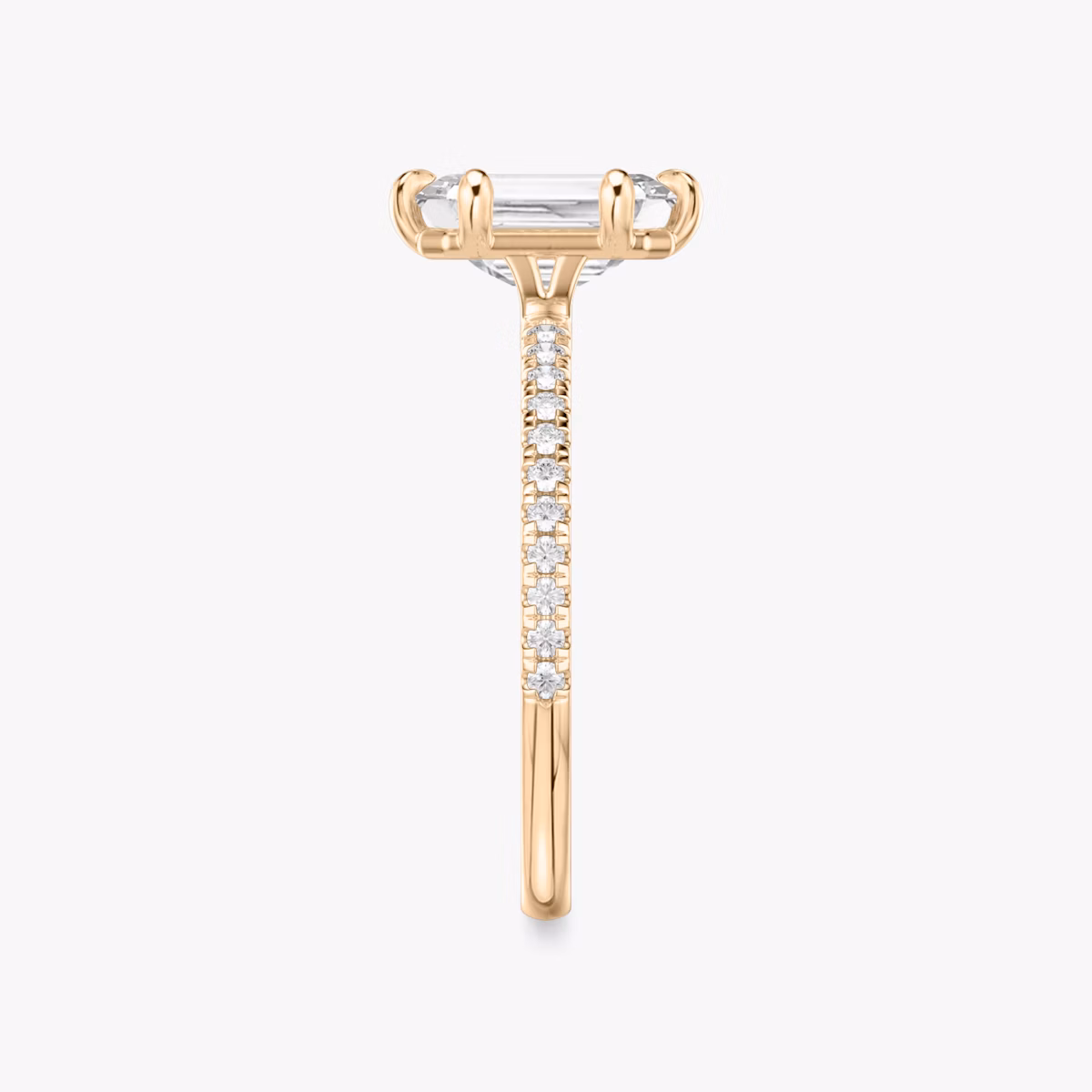 The Signature 6 Prong solitaire in 14k rose gold with a emerald diamond