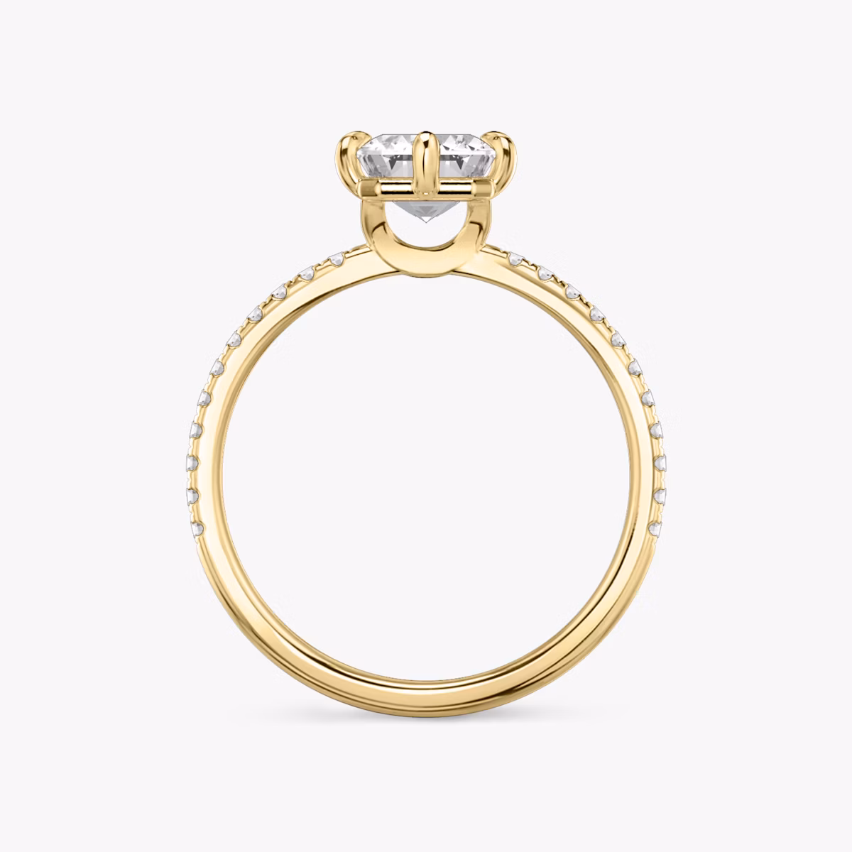 The Signature, reimagined. Elegant and timeless, the Signature 6 Prong setting is designed to accentuate the brilliance and beauty of the center stone while enhancing its security. Designed to sit low on your finger and flush with your wedding band, our signature sling dips slightly below the band, drawing in light so your diamond shines bright. Enhance your ring with an optional hidden halo of pavé set diamonds to create a subtle yet luminous effect.