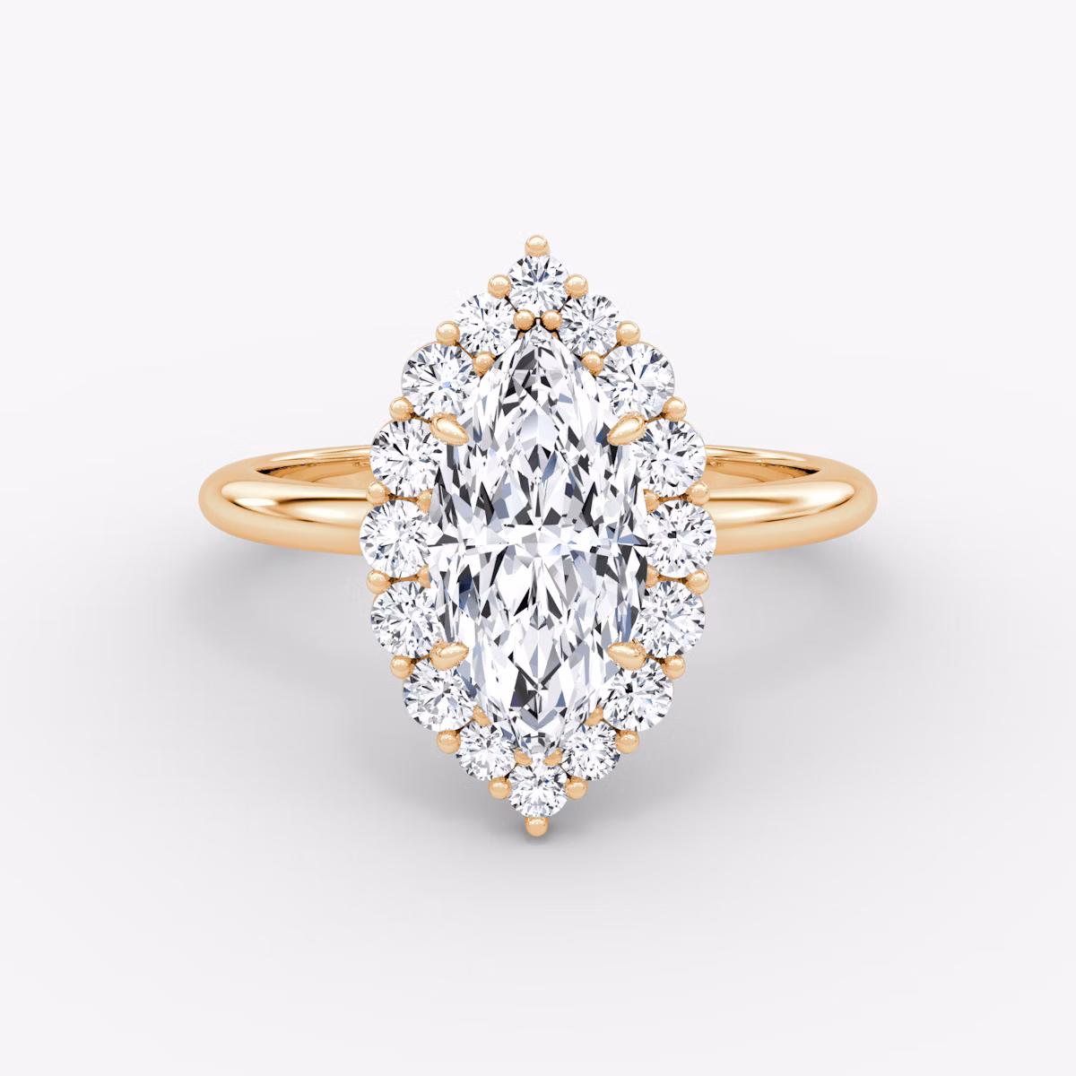 The Signature Floral Halo engagement ring in 14k rose gold with a marquise diamond