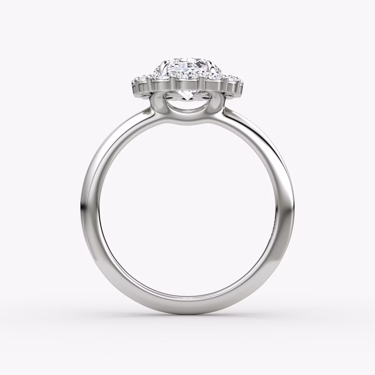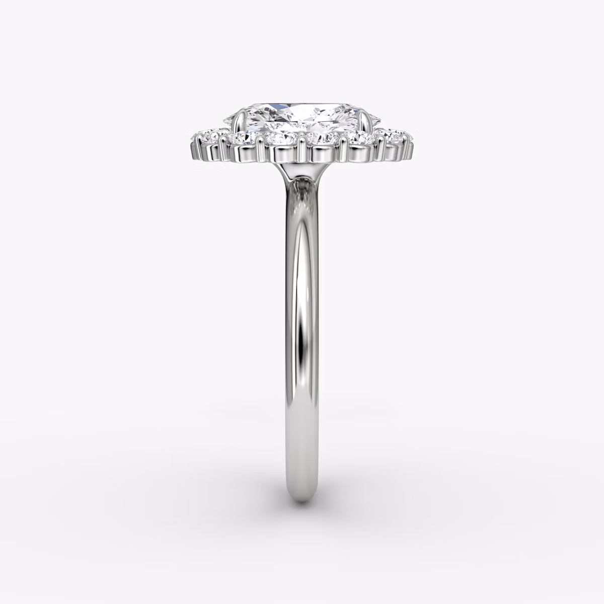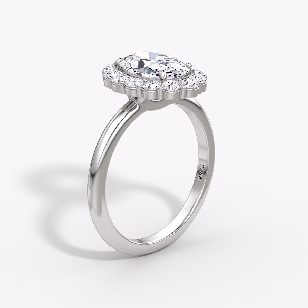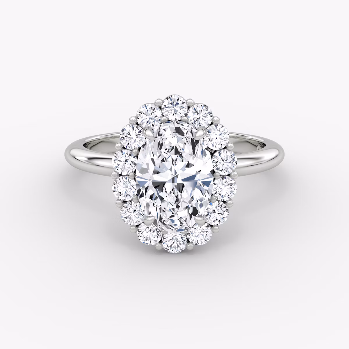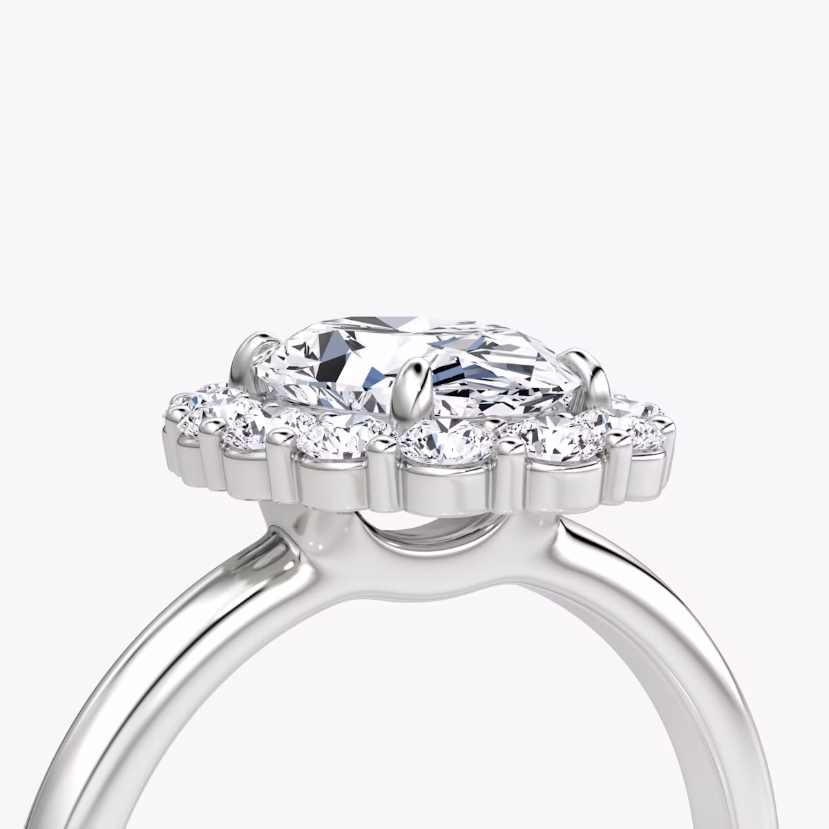 The Signature Floral Halo engagement ring in 18k white gold with a oval diamond