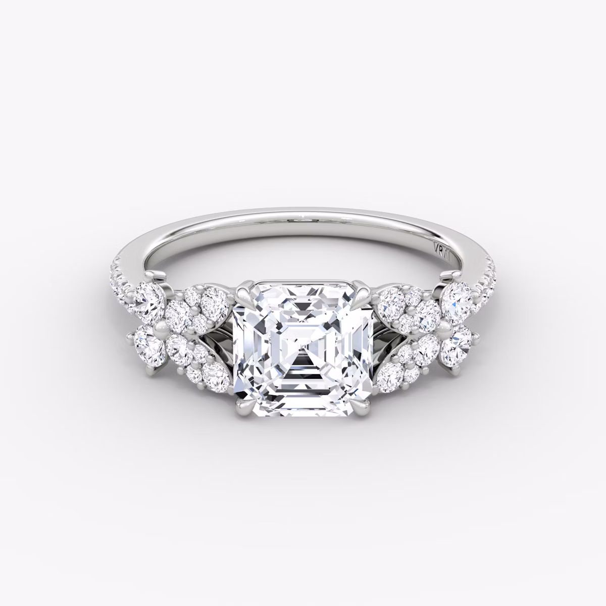 The Signature Floral solitaire in 18k white gold with a asscher diamond