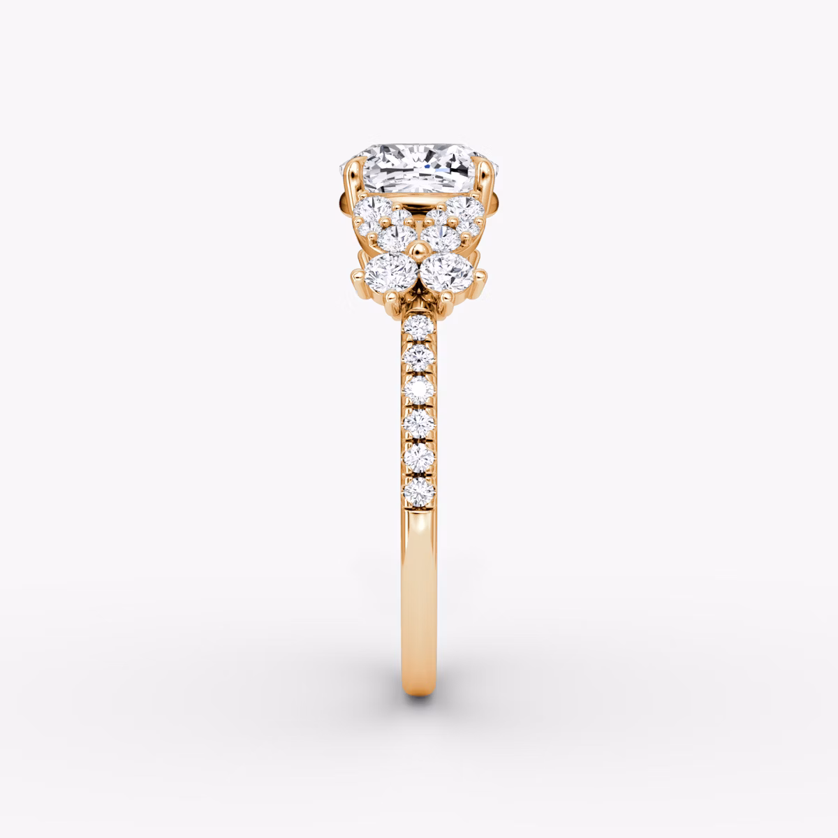 The Signature Floral solitaire in 14k rose gold with a cushion diamond