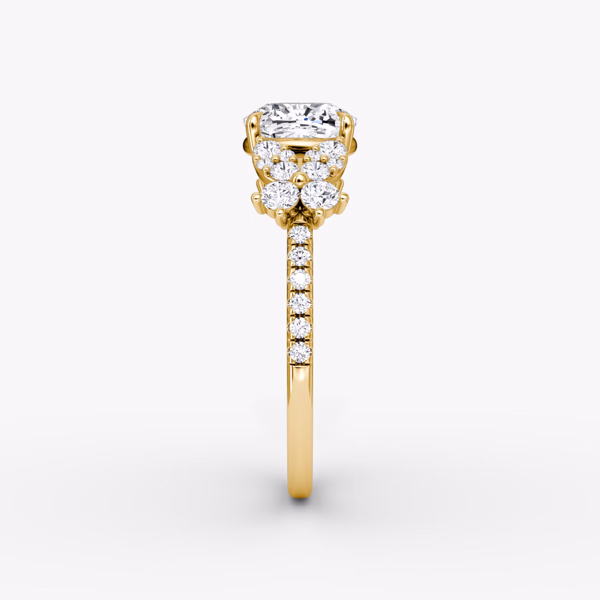 The Signature Floral solitaire in 18k yellow gold with a cushion diamond