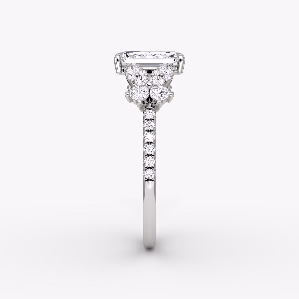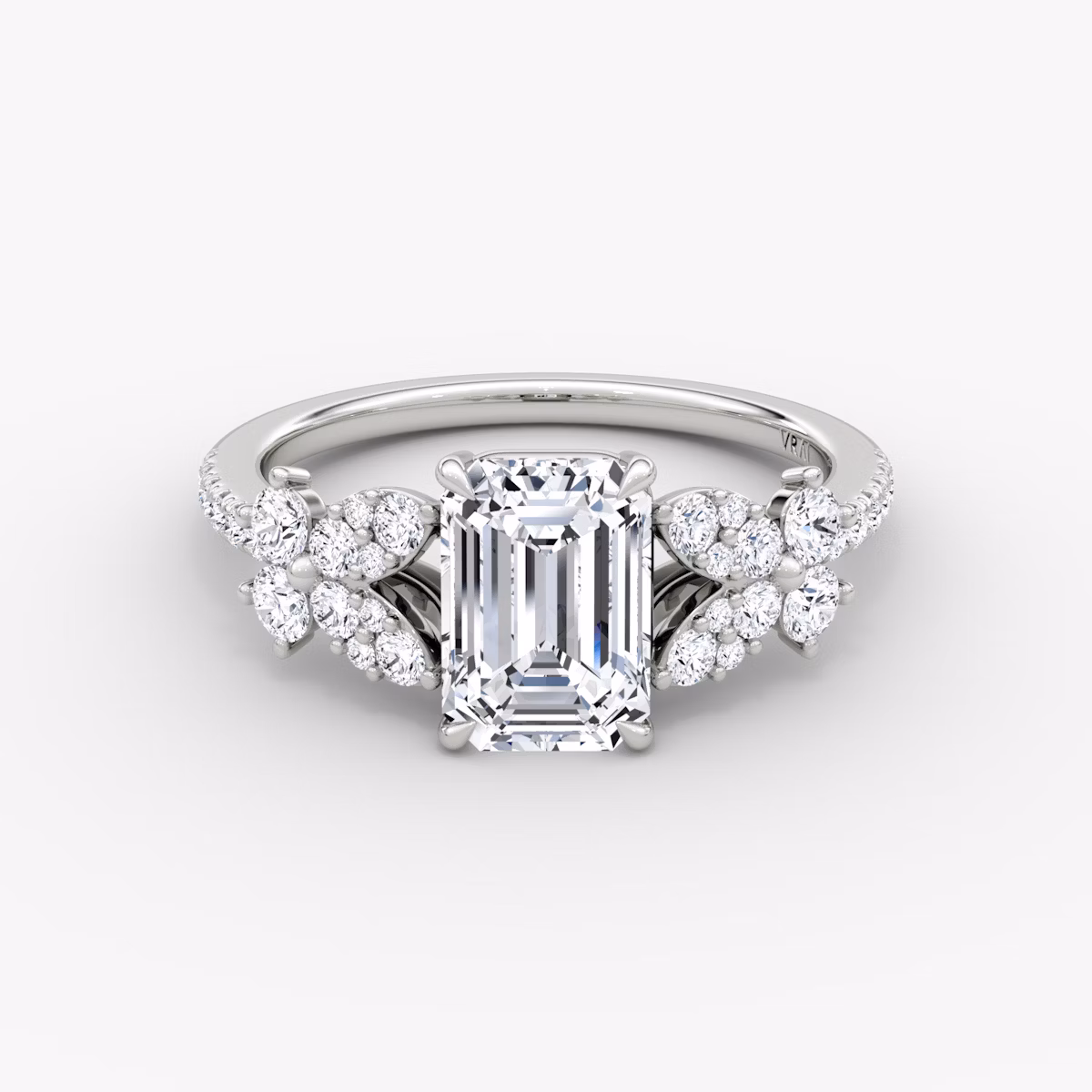The Signature Floral solitaire in 18k white gold with a emerald diamond