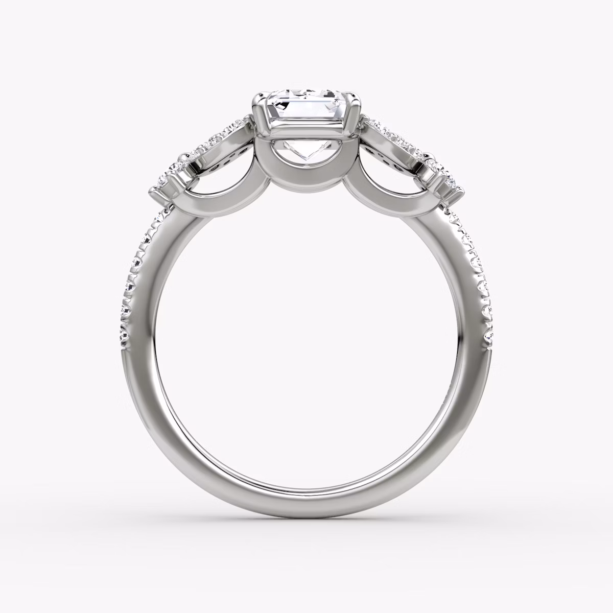 A nature-inspired take on our most sought-after setting. The signature sling dips slightly below the band, securing your VRAI created diamond in place while drawing in the light. Round side stones form petals on either side for a thoroughly floral look.